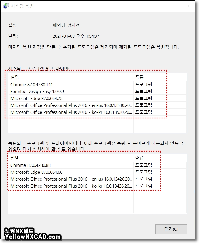 - 복원 후 사라지는/영향받는 항목 체크하는 방법