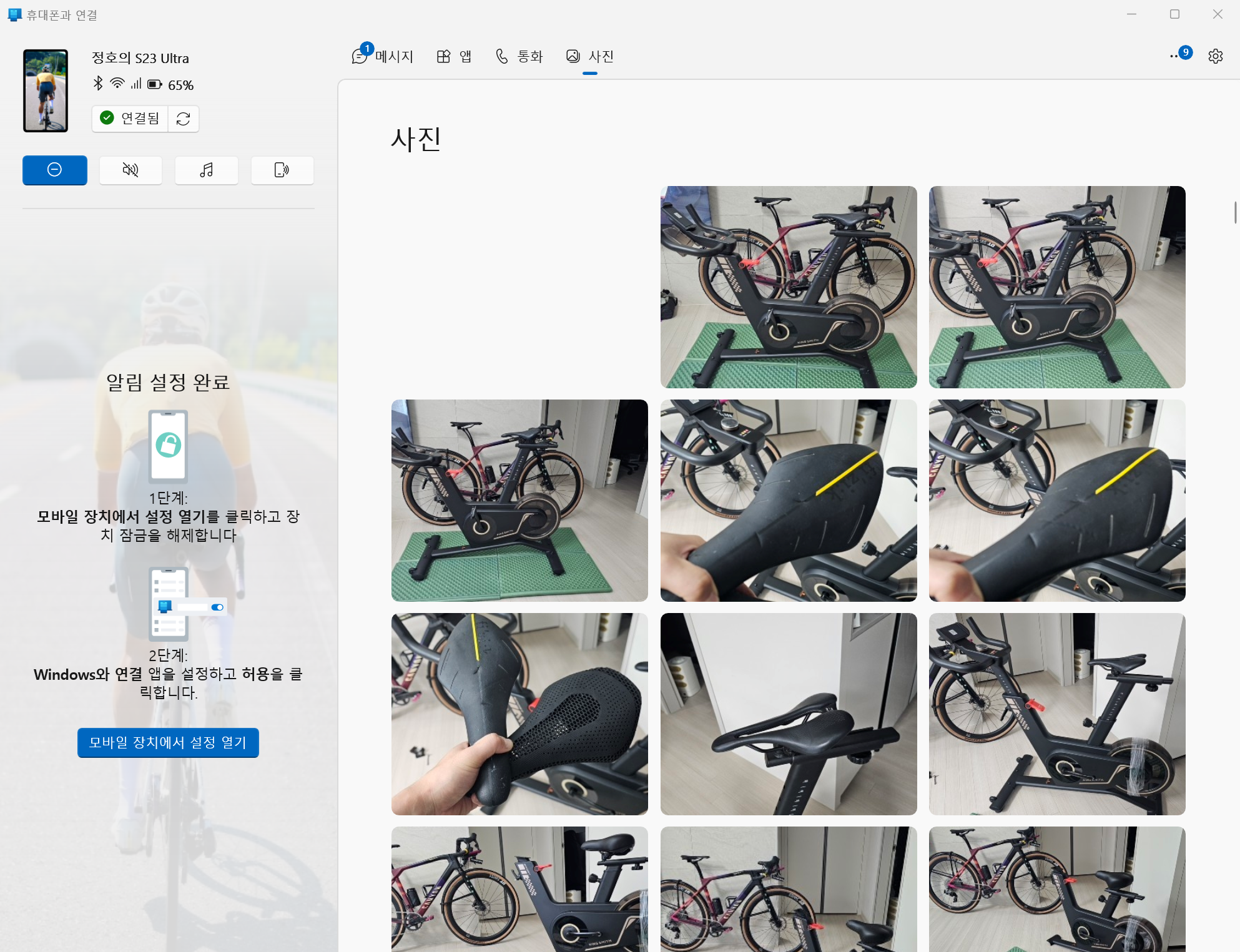 컴퓨터 갤럭시s23 무선연결 전화 및 문자 앱 실행 및 설정방법