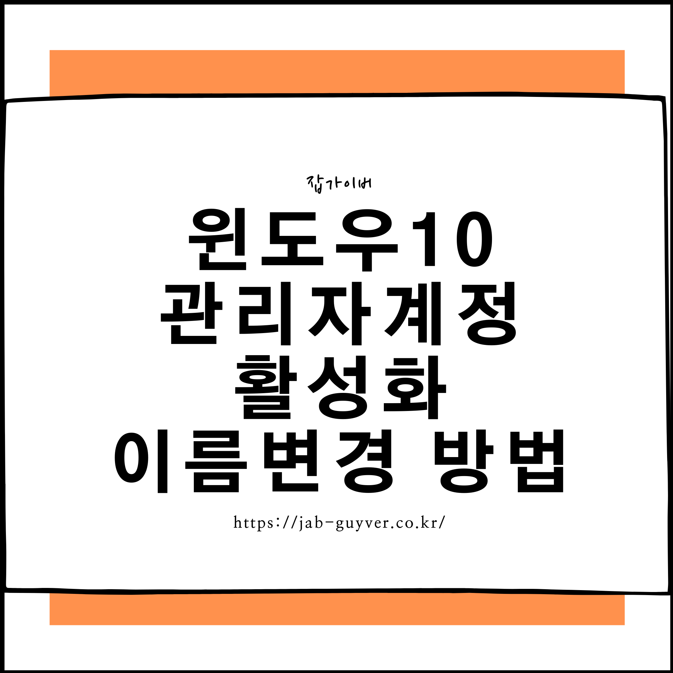 윈도우10 관리자계정 활성화 및 변경 삭제방법