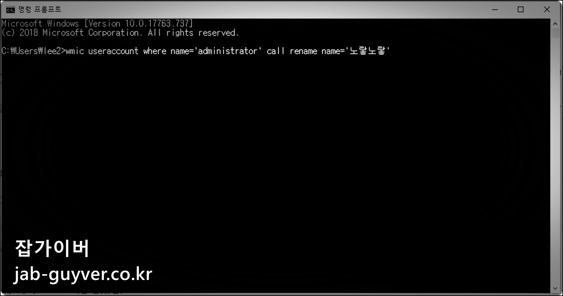 wmic useraccount where name=’administrator’ call rename name=’원하는 계정 이름’