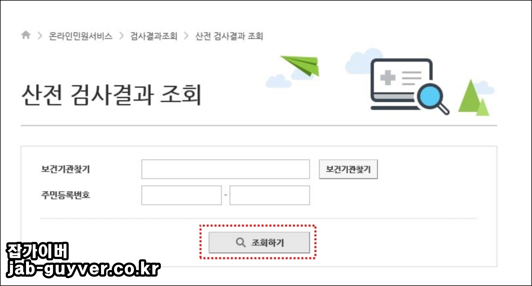 보건증 발급과 비슷한 방법으로 보건기관 및 주민등록번호로 쉽게 산전검사 결과를 조회할 수 있습니다.