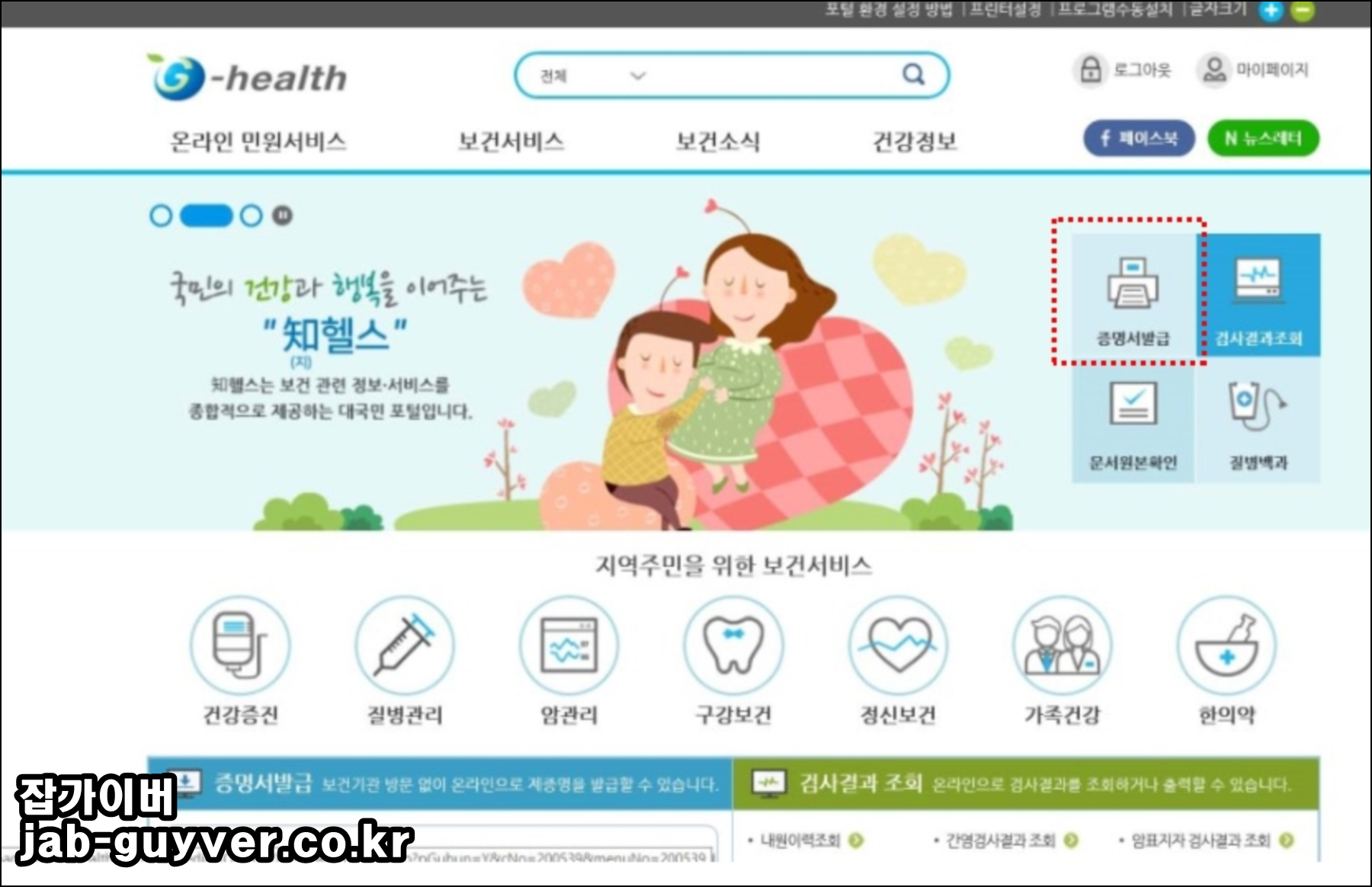 지헬스 홈페이지를 통해 기본적인 건강검진, 질병관리. 암관리, 구강보건, 정신보건, 가족건강, 한의학 보건서비스를 제공합니다.