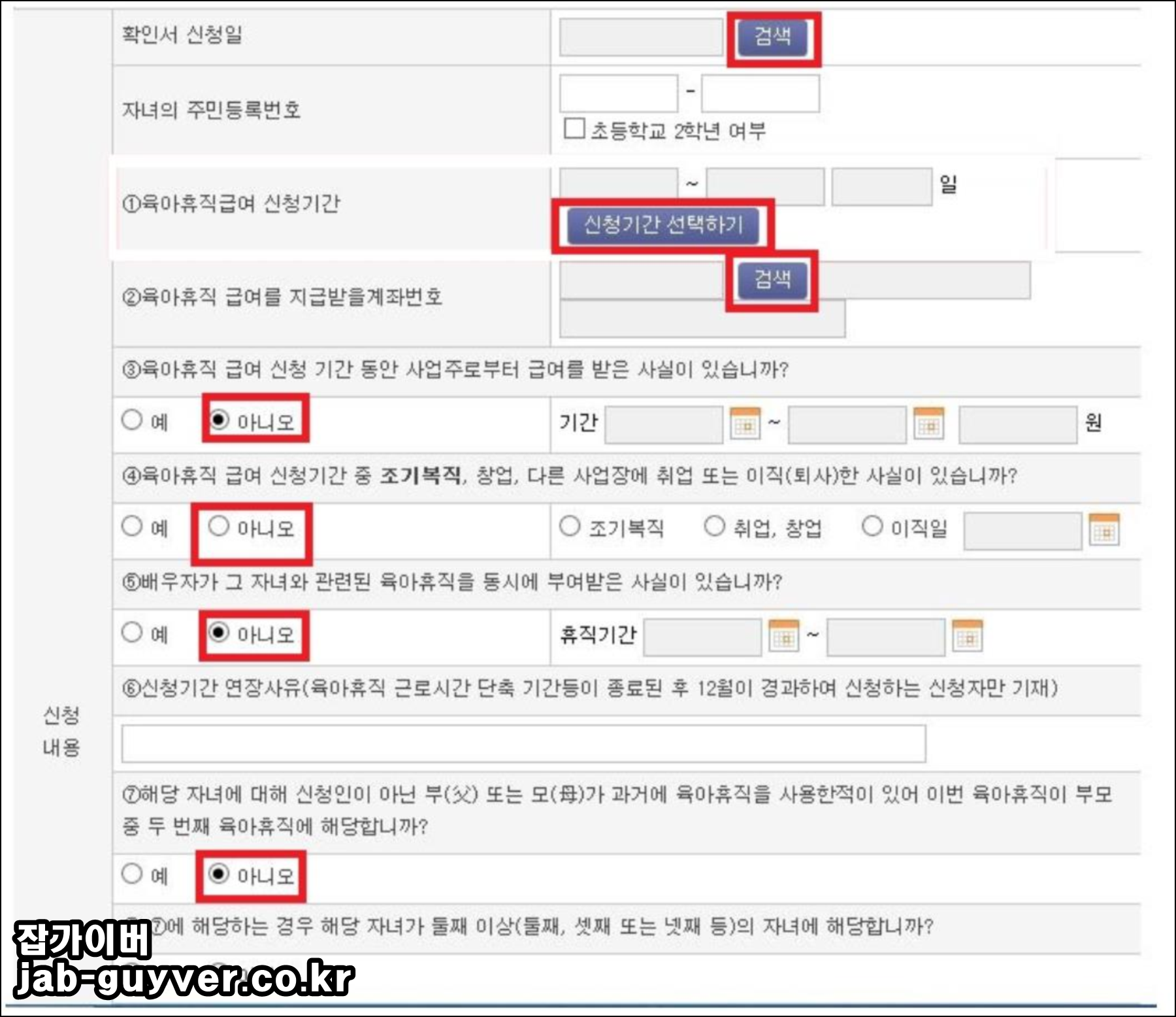 - 육아휴직 급여 신청기간 동안 사업주로부터 급여를 받지 않을 테니아니오