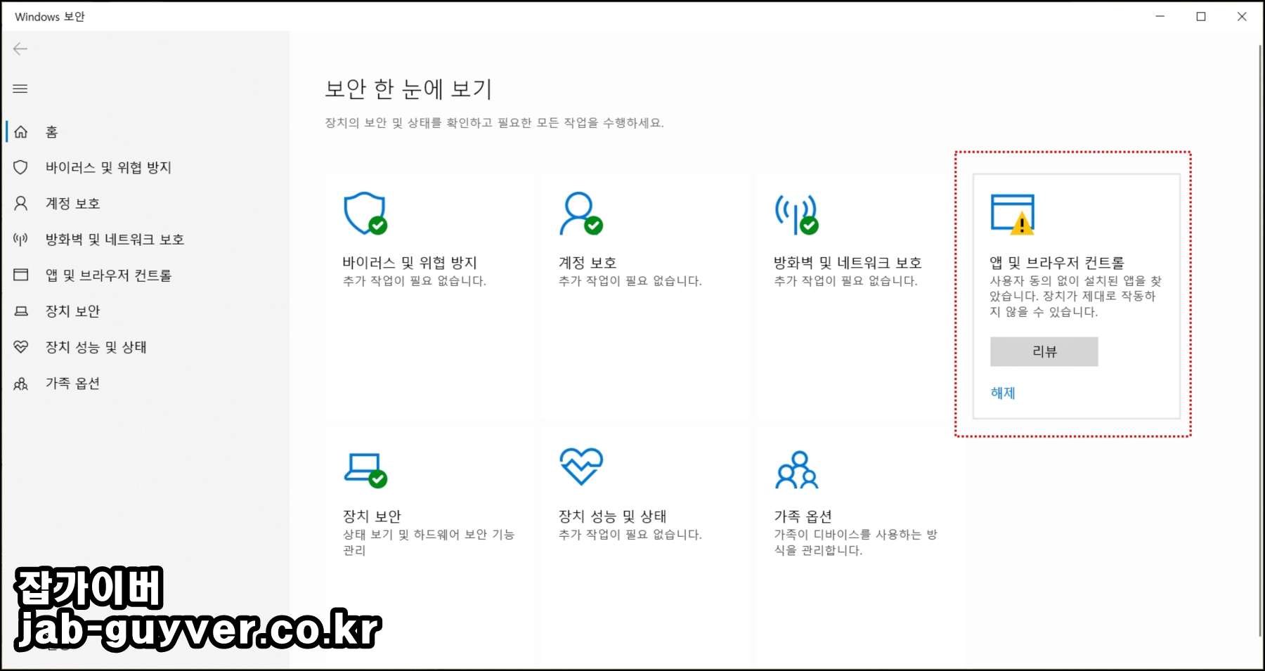 백신 프로그램을 삭제했기 때문에 윈도우에서 제공하는 보안설정을 확인해야합니다.