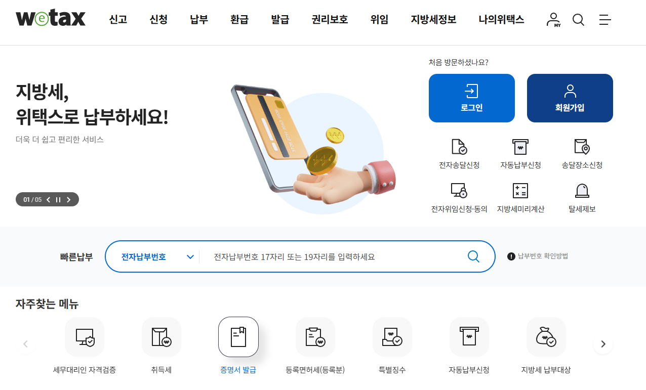 회원 로그인 후 바로 조회·납부가 가능하고, 공동·금융인증서 및 민간 간편인증을 활용합니다.
