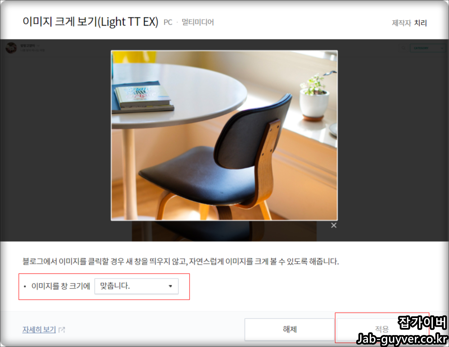 티스토리에서는 "이미지 크게 보기(Light TT EX)"라는 플러그인을 사용하여 이미지를 창 크기에 맞게 최적화시킬 수 있습니다. 이 설정은 이미지를 클릭했을 때 크게 보여주는 기능으로, 이미지를 보다 자연스럽게 표시할 수 있도록 도와줍니다.