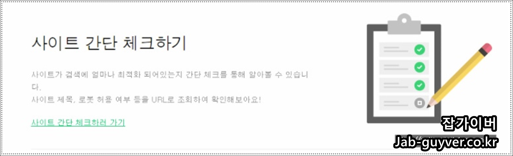 - 네이버 검색엔진 사이트 간단 체크하기도 존재하며 해당 기능을 이용하면 웹마스터 도구에 등록하지 않고 내 홈페이지에 부족한 부분을 간단하게 체크가 가능합니다.
