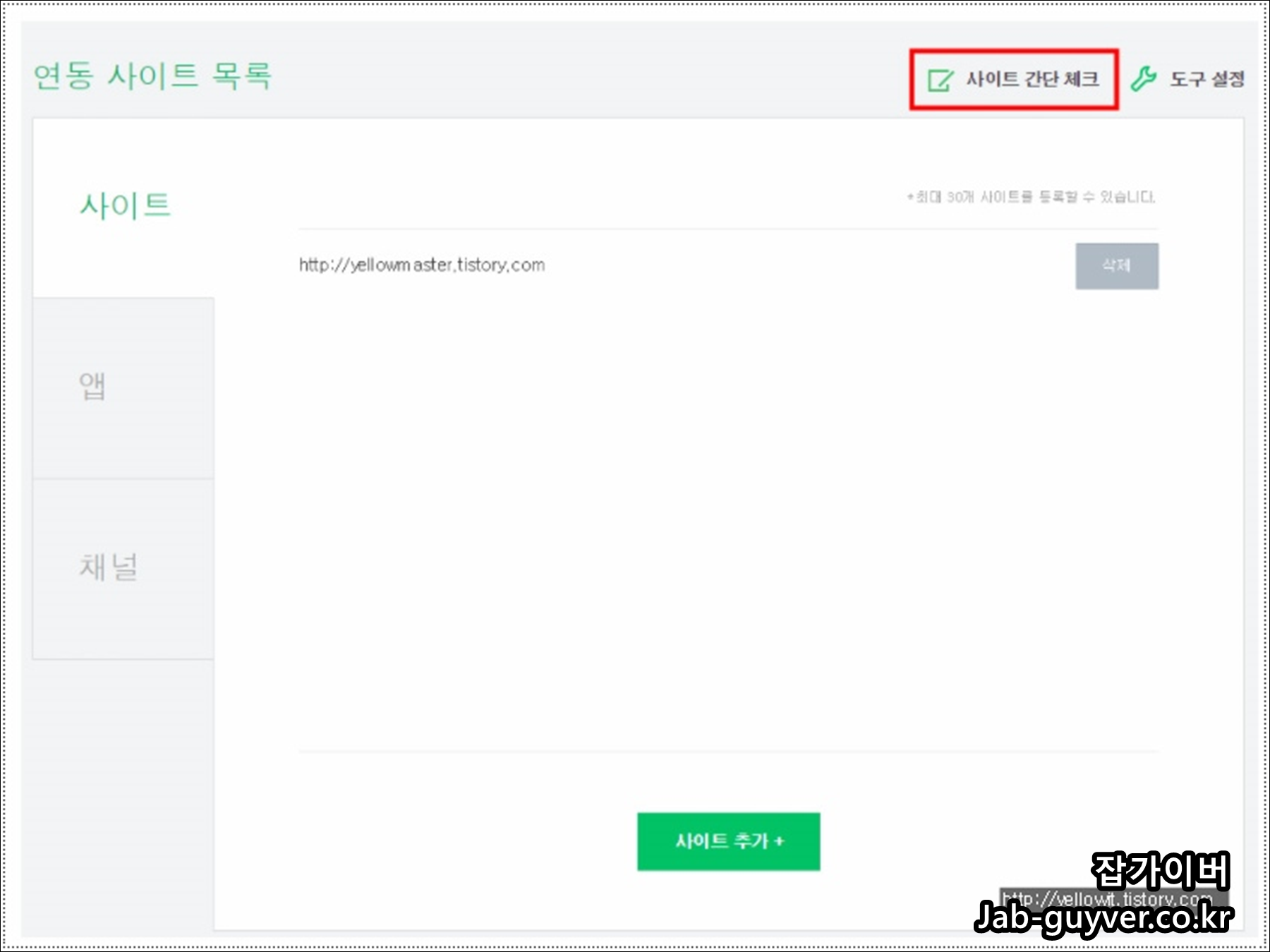 우측 상단에 있는 사이트 간단 체크 부분을 선택합니다.