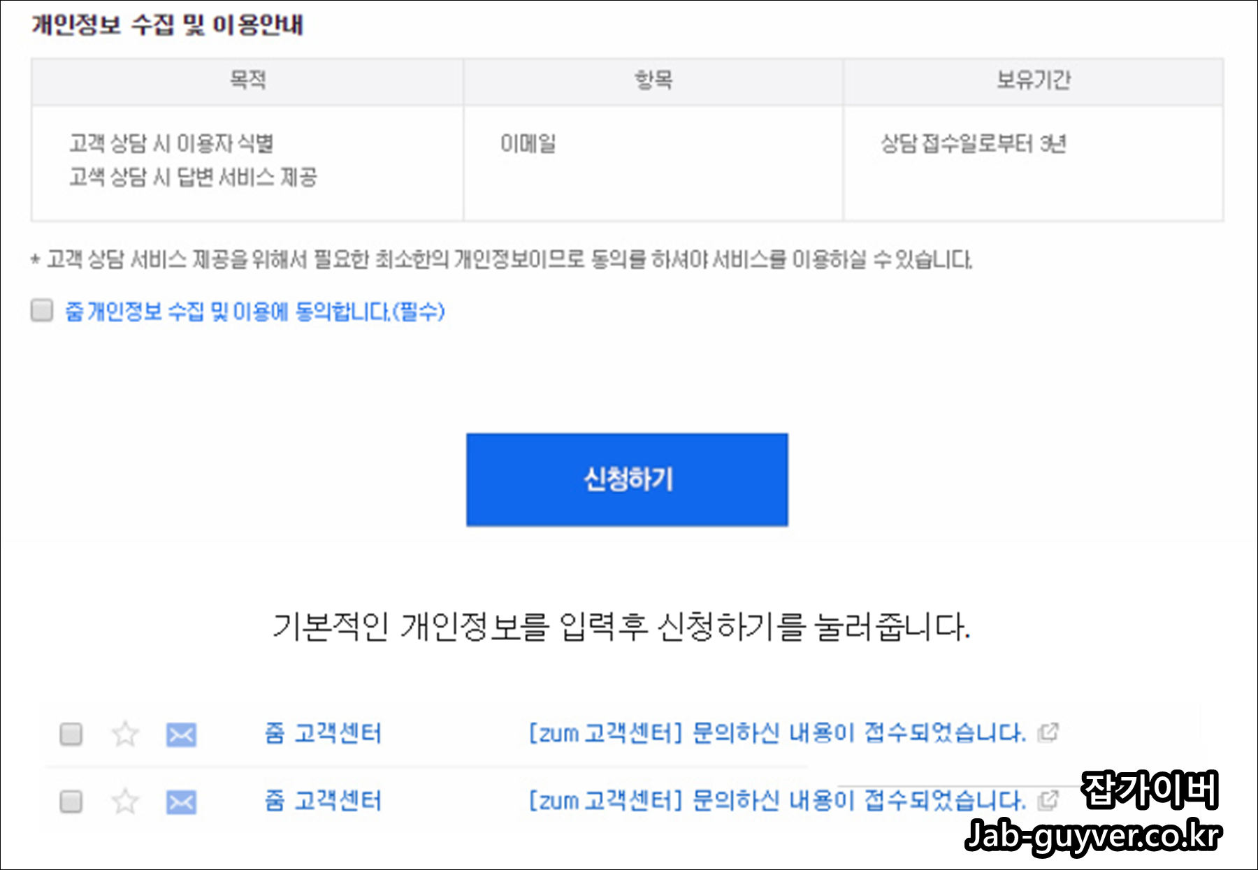 모든 정보가 완료되었다면 하단에 수집 동의를 해주고 신청을 눌러주면 됩니다.