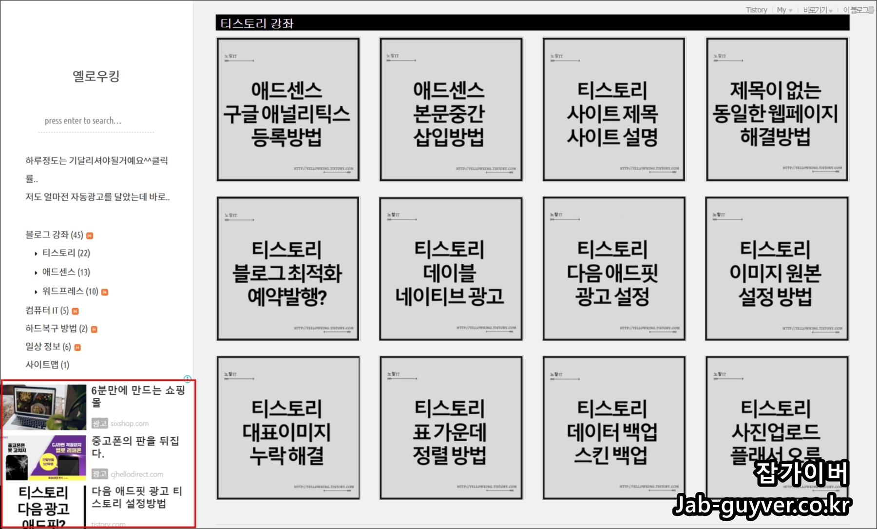 고정으로 설정하게 되면 사이드바에 전체 위젯(광고/배너/카테고리)이 다 보이지 않고 잘리는 분들이 있을 수 있는데 이럴 땐 높이/스크롤 처리를 함께 잡아주는 게 편합니다.