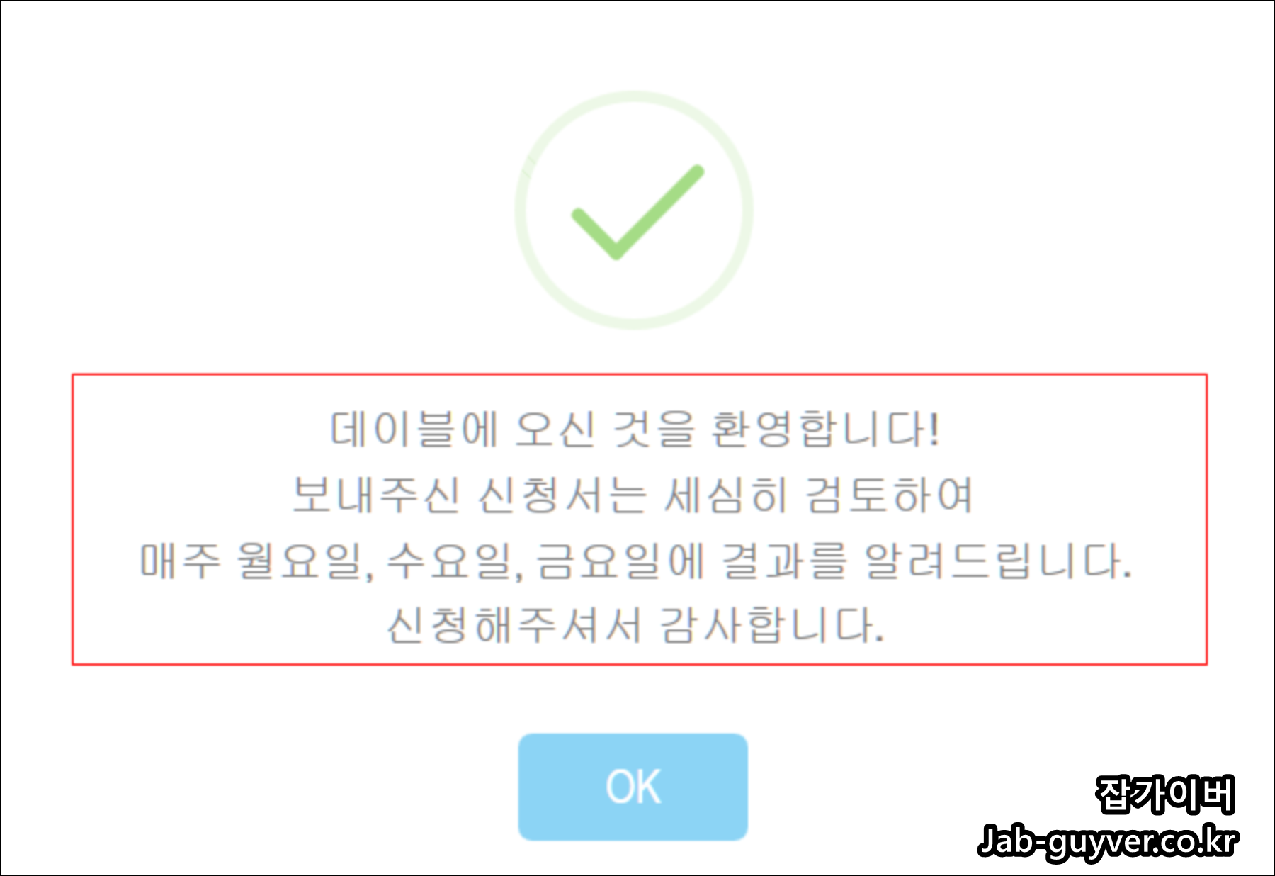 이렇게 기준에 부합하게 되면 매주 월요일 수요일 금요일로 데이블 광고 심사가 이루어져 회신을 받게 됩니다.