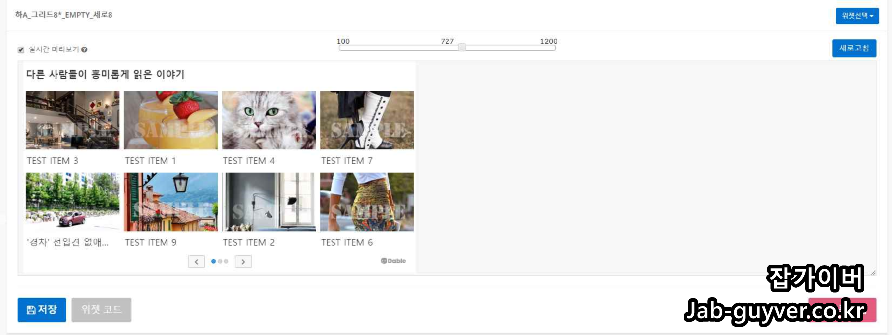 2. 승인 후 발급받은 데이블 위젯 코드를 입력