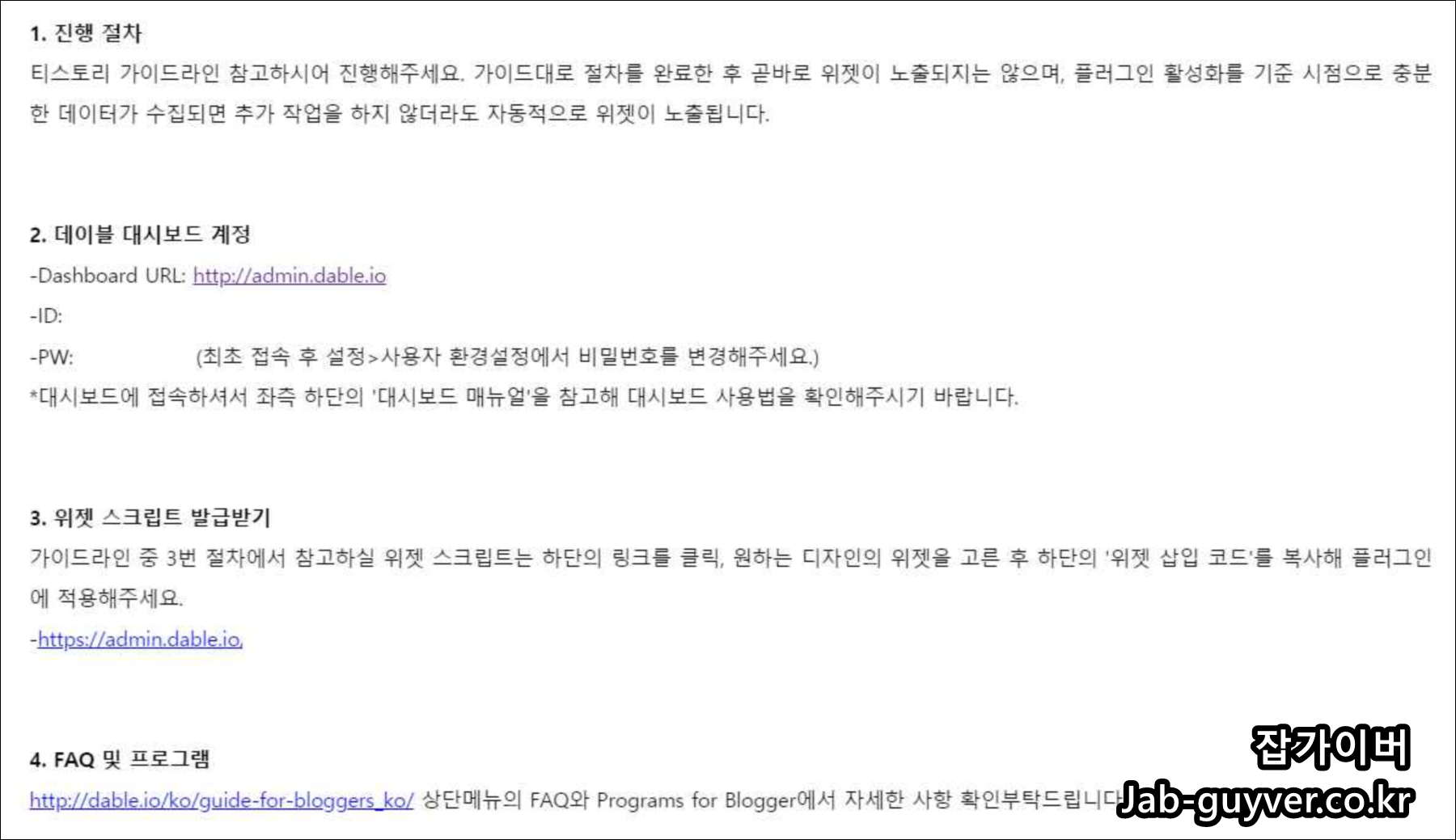 - 승인 후 발급받은 데이블 위젯 코드를 입력