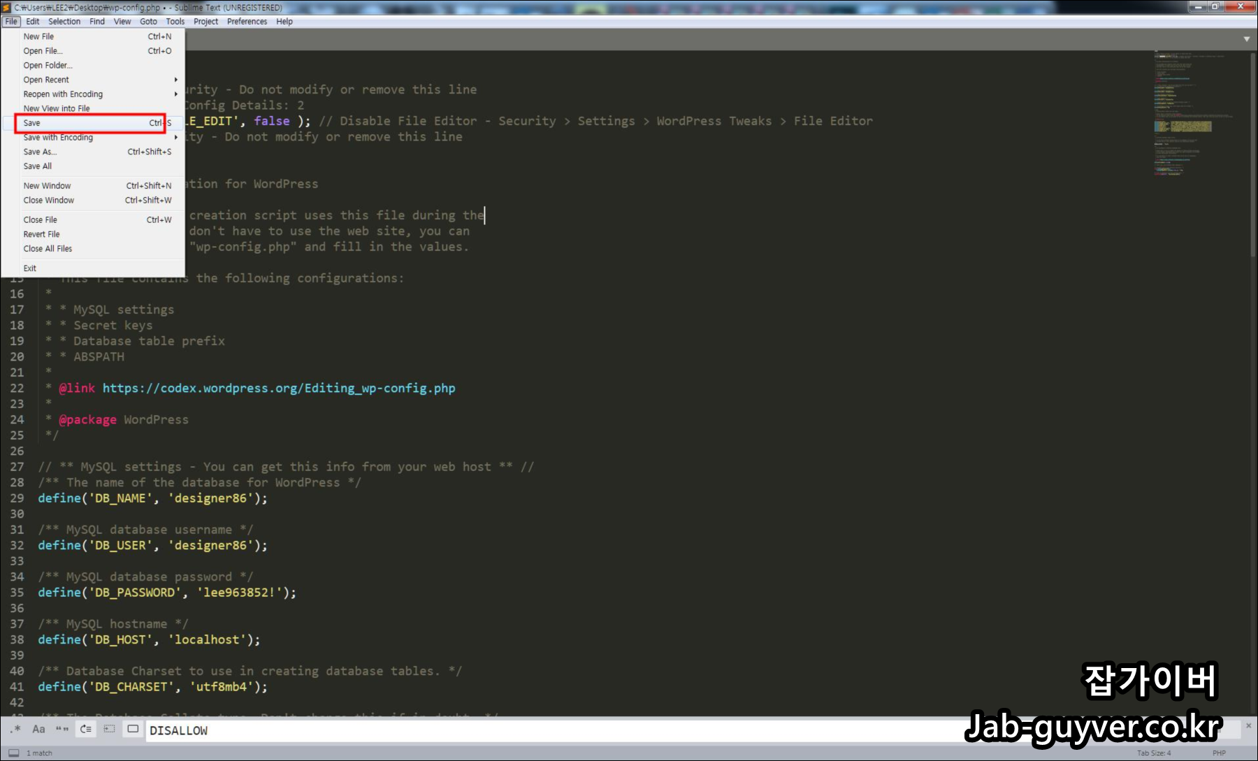 Sublime Text에서 워드프레스 PHP 파일을 안전하게 수정하려면 어떻게 해야 하나요?