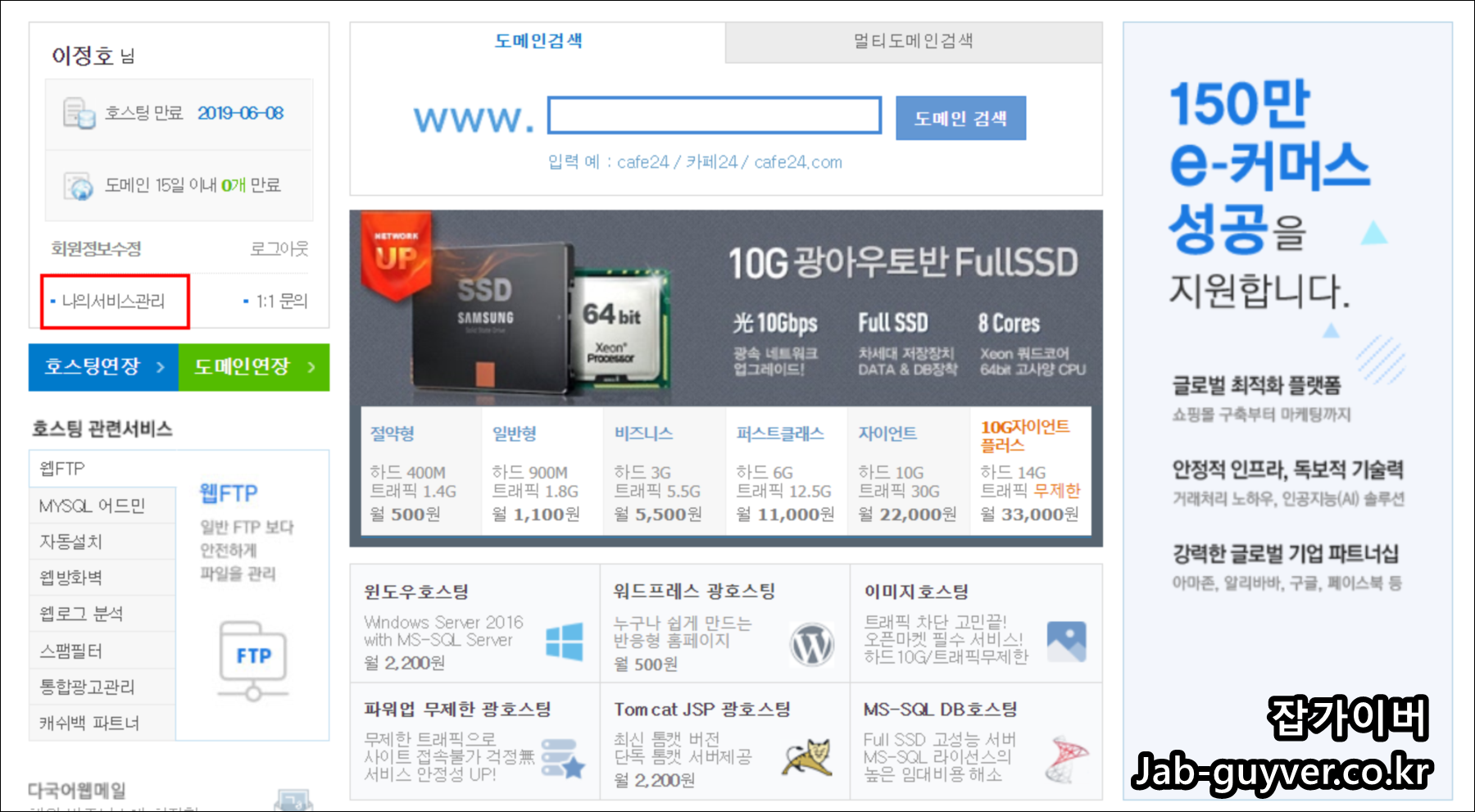 - 워드프레스를 백업과 복원을 하기 위해서는 카페24로 접속 후 로그인합니다.