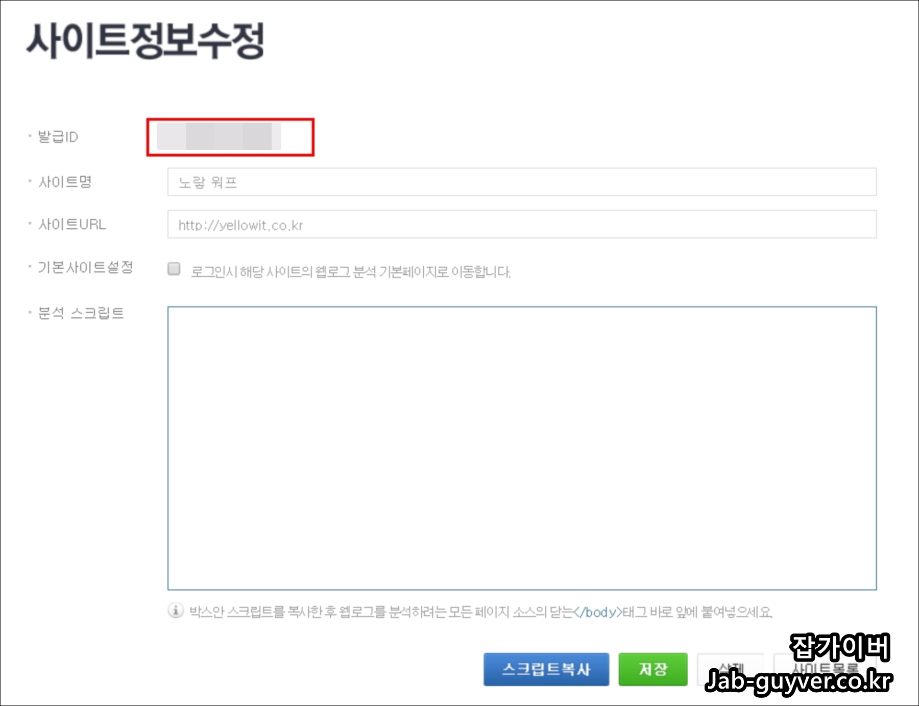워드프레스 네이버 애널리틱스 발급ID 연동 - 노랗IT월드