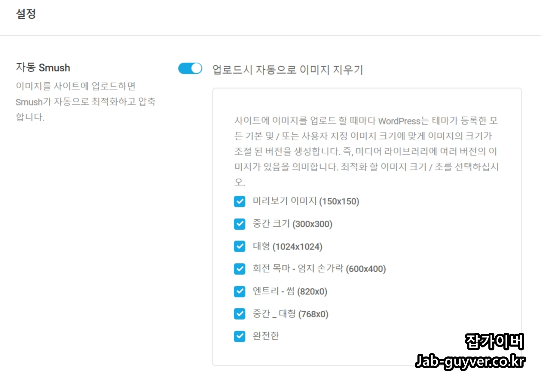 Smush 하나만으로도 이미지 용량 경고를 상당 부분 없앨 수 있습니다. 다만 이미지 크기 자체가 레이아웃에 비해 너무 큰 경우에는 테마 구조나 업로드 사이즈도 함께 조정해 줘야 합니다. 가능하다면 필요한 사이즈로 리사이즈한 원본을 올리고, Smush로 WebP·AVIF 변환과 lazy load까지 묶어 적용하는 편이 가장 안정적입니다.