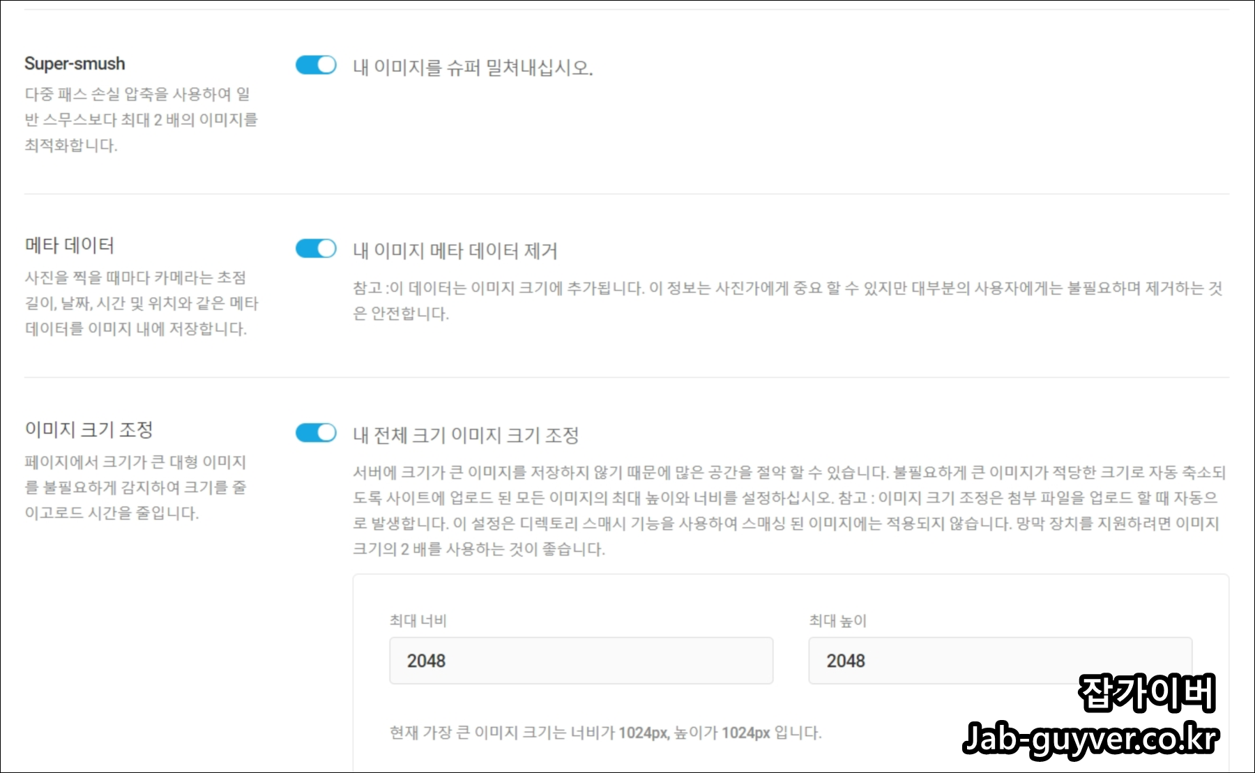 새로 업로드되는 이미지뿐만 아니라 예전에 올려두었던 이미지까지 한 번에 정리할 수 있다는 점에서, 처음 설정할 때 효과가 꽤 크게 느껴집니다.
