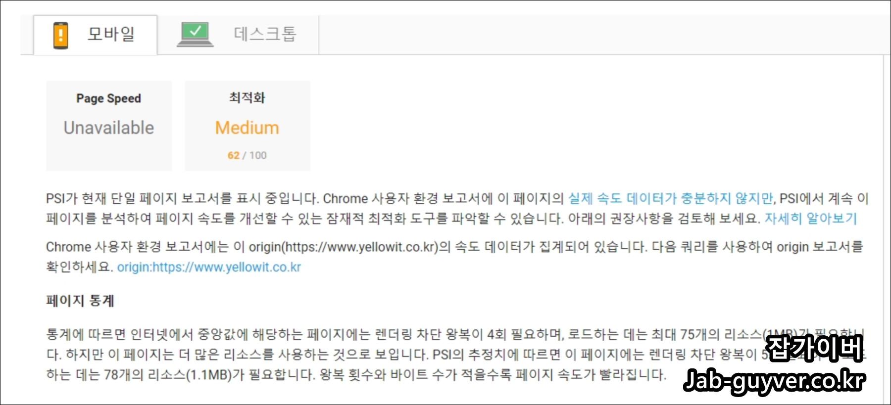 워드프레스 속도 측정과 PageSpeed Insights 활용