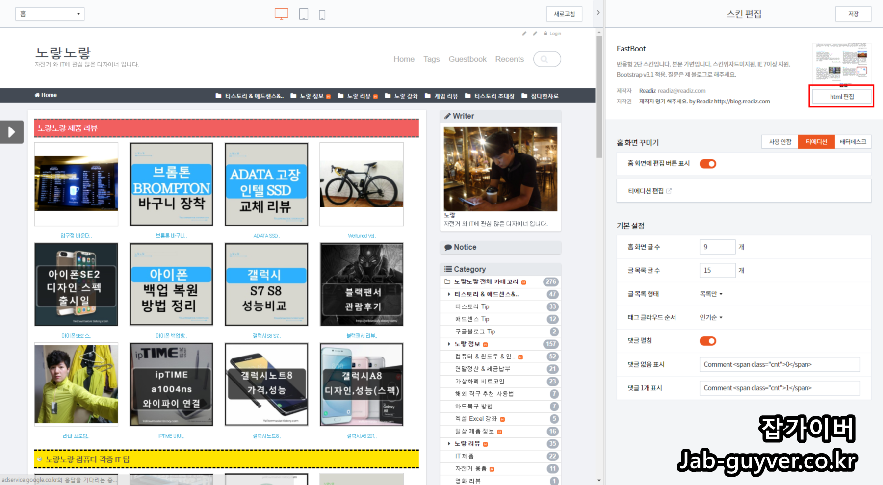 2. 스토리 기준이지만 워드프레스나 블로그 스폿 등의 유저들도 똑같이 HTML 편집으로 들어가면 됩니다.