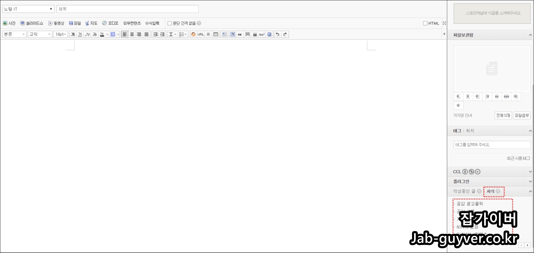 - 포스팅을 하다가 마음에 드는 위치에 마우스 커서를 두고 서식을 선택.