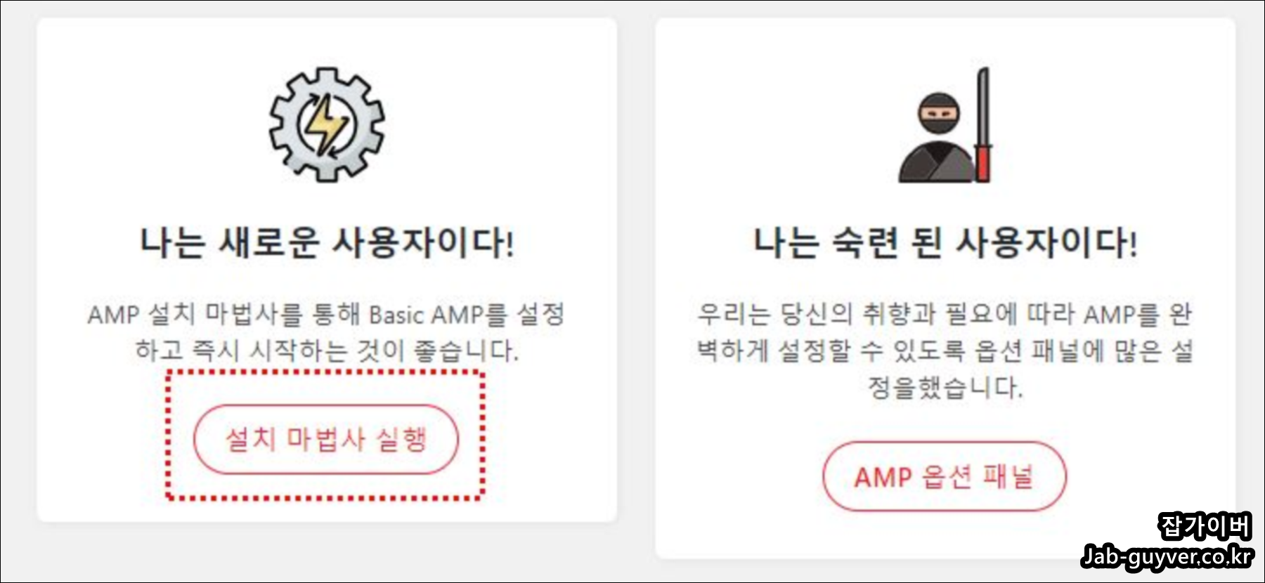 처음 활성화하면 “I’m a new user”와 “I’m an experienced user” 중에서 고르도록 나오는데, AMP가 처음이라면 새 사용자 쪽을 선택해서 마법사 화면을 따라가는 편이 부담이 덜합니다.
