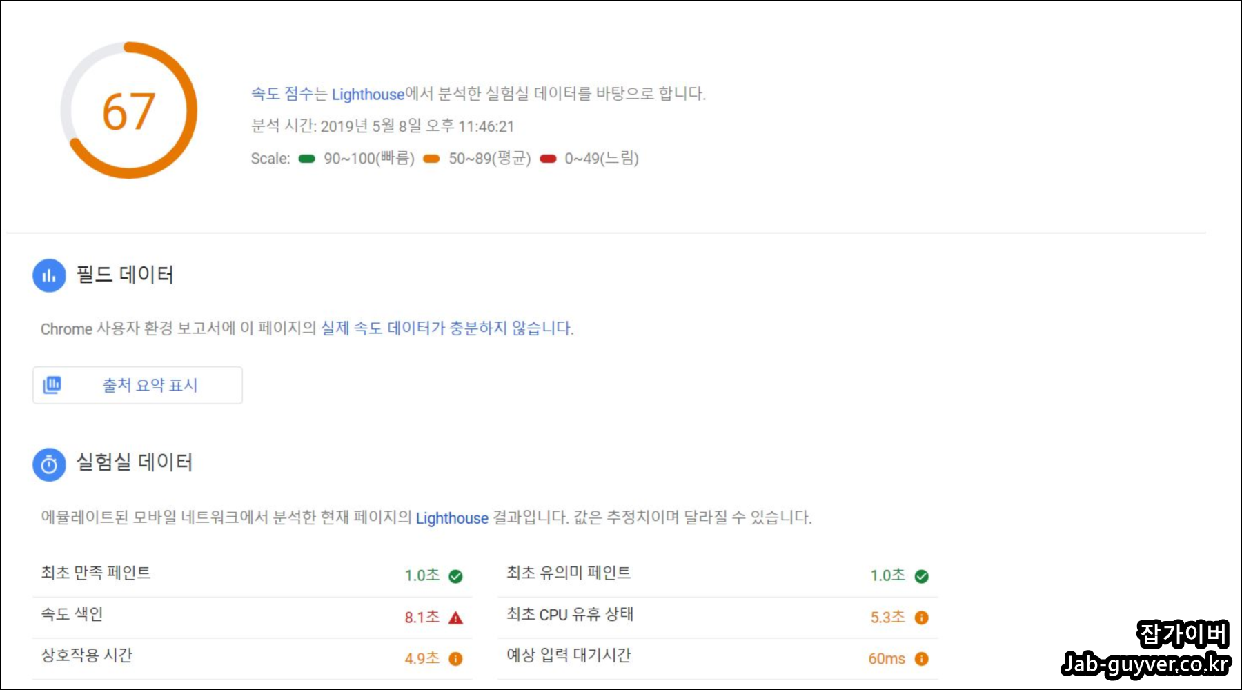 모바일 속도를 이야기할 때 가장 먼저 확인하는 도구가 Google PageSpeed Insights입니다.