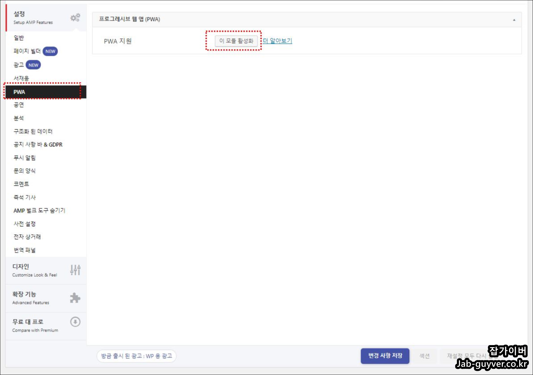 AMP for WP 안에서 PWA 애드온을 설치해 함께 쓰면 더 자연스럽게 연동됩니다. 설