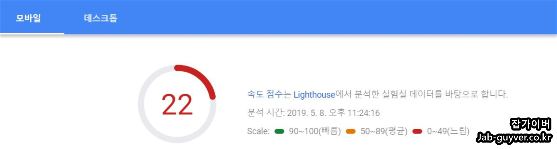모바일 속도를 이야기할 때 가장 먼저 확인하는 도구가 Google PageSpeed Insights입니다.