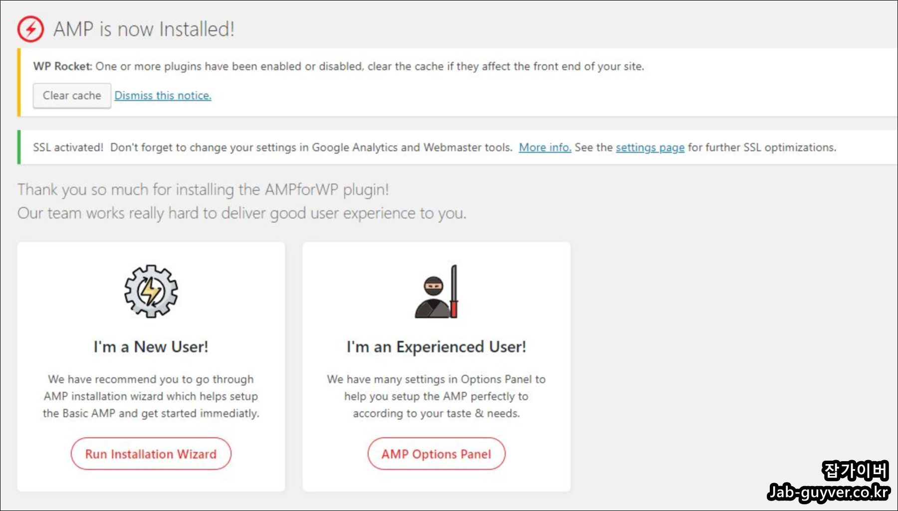 처음 활성화하면 “I’m a new user”와 “I’m an experienced user” 중에서 고르도록 나오는데, AMP가 처음이라면 새 사용자 쪽을 선택해서 마법사 화면을 따라가는 편이 부담이 덜합니다.