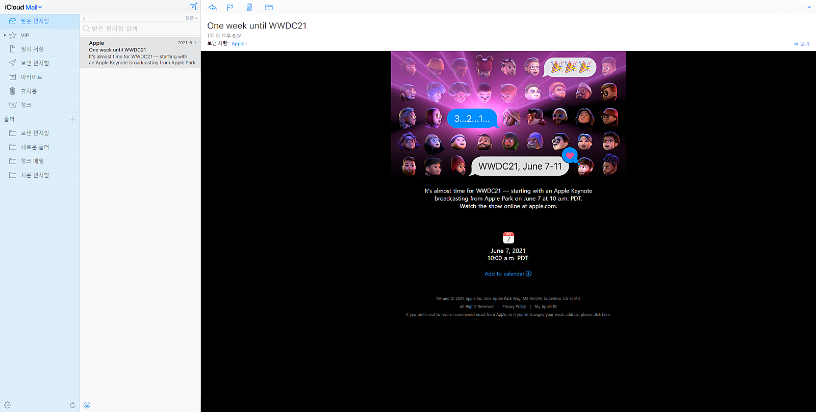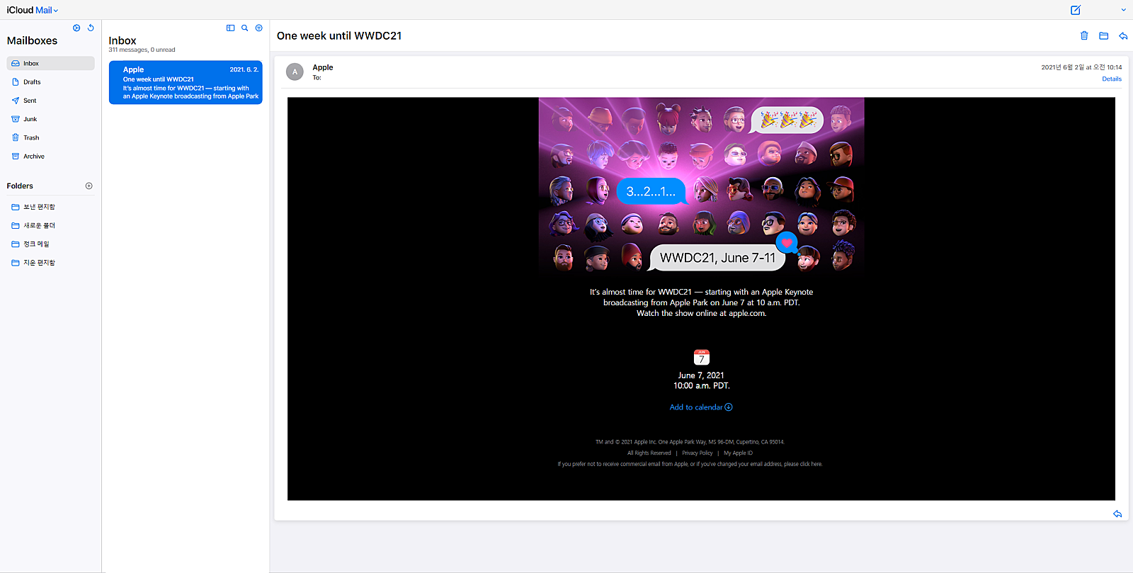 공식 iCloud 웹 사이트를 통해 기존과 동일한 UI의 Mail 앱을 사용할 수 있으며 Mail을 제외한 다른 iCloud 웹 앱은 아직까지 오래된 디자인을 유지하고 있습니다
