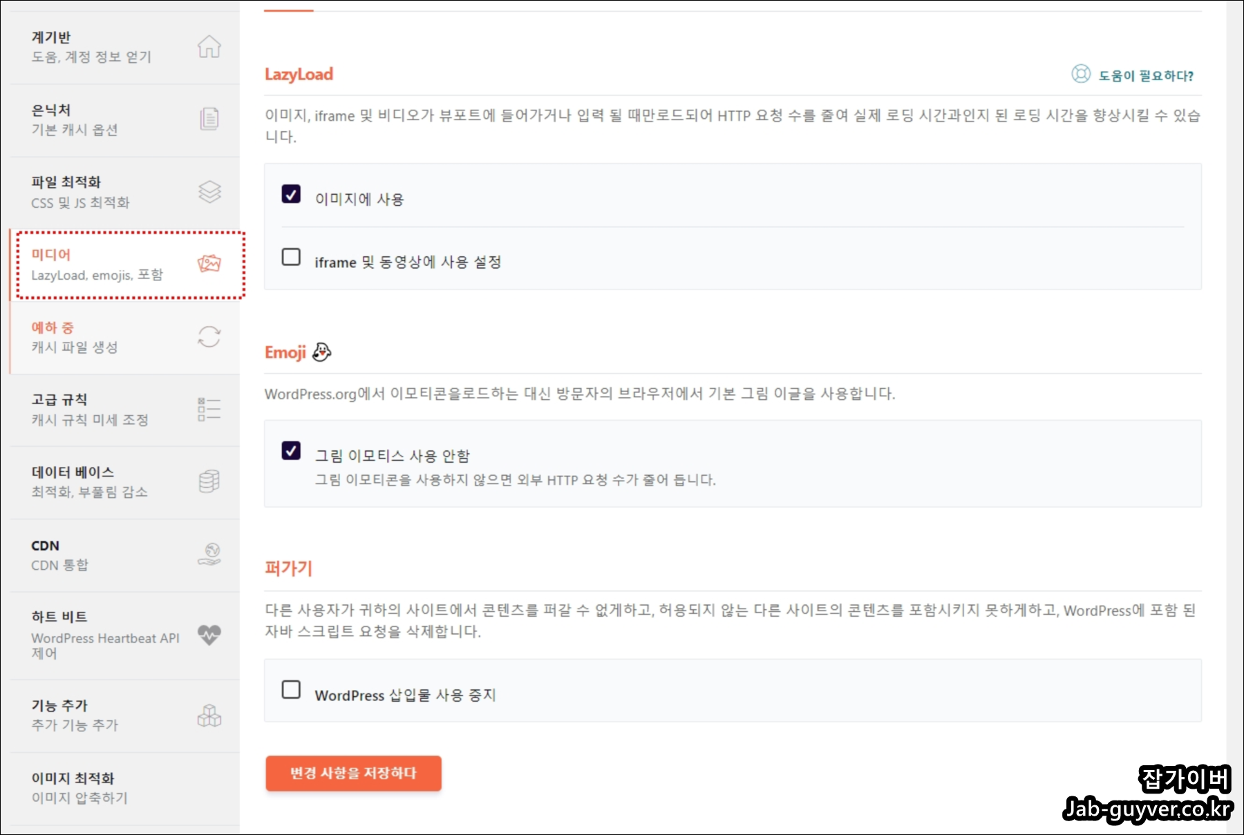 만약 기존에 사용 중인 워드프레스 최적화 플러그인과 겹치는 게 있다면 삭제를 하는 것이 좋습니다.