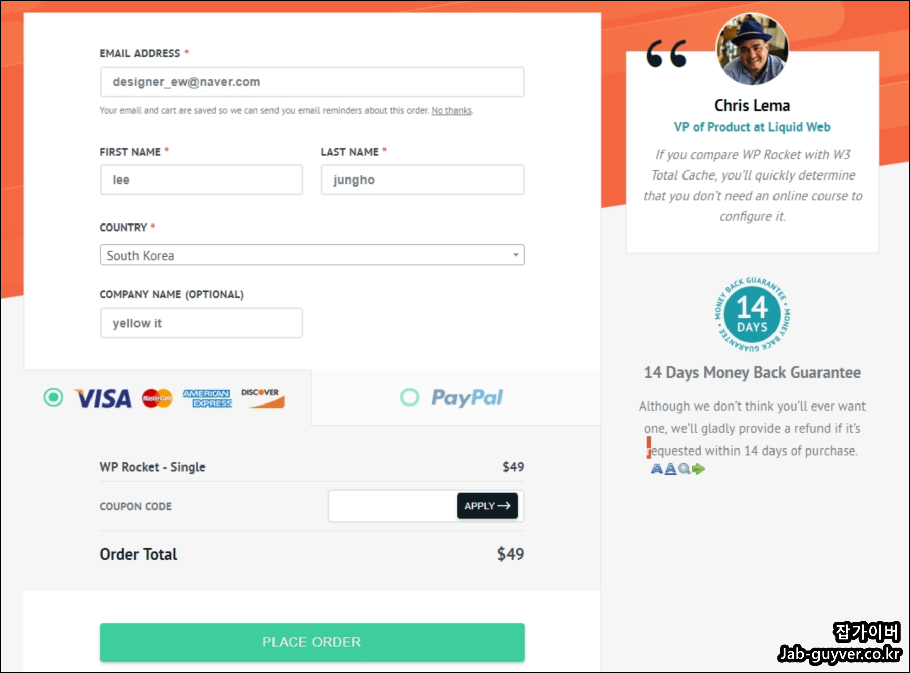 특별히 가입을 하지 않아도 이메일주소와 이름 지역 그리고 카드정보만 입력하면 결제가 이루어집니다.