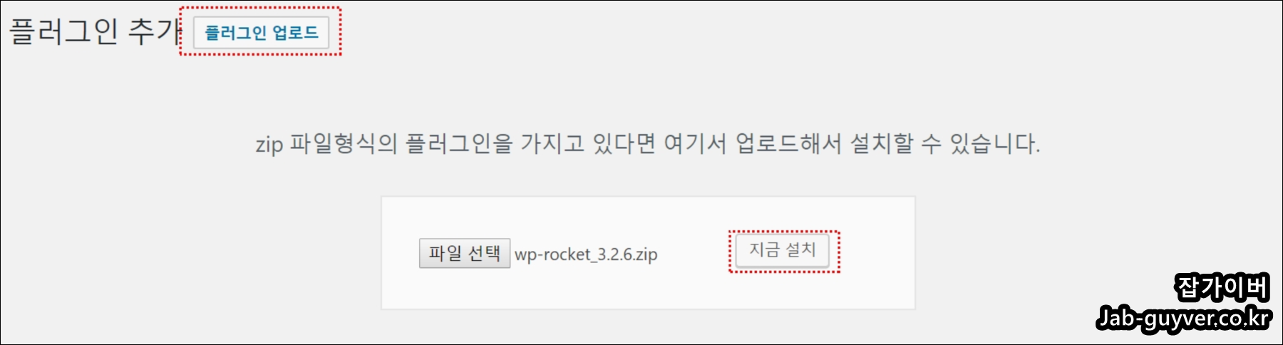 이후 워드프레스 로그인 후 플러그인 추가 -> 플러그인 업로드 선택합니다.