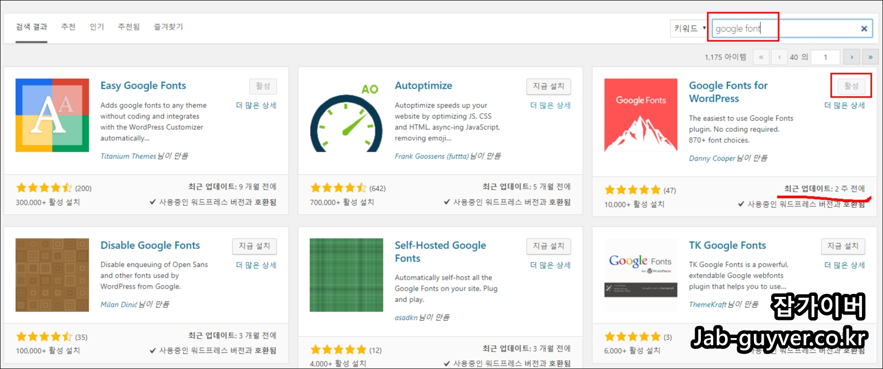 워드프레스의 플러그인을 이용하면 폰트를 쉽게 설정할 수 있는 방법이 다양하게 있습니다.