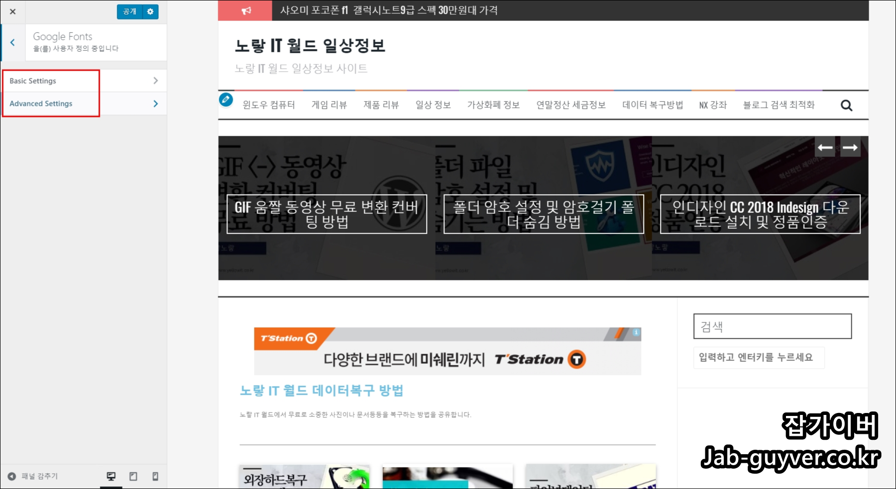 워드프레스 폰트 글꼴 크기 변경 구글 나눔폰트 설정