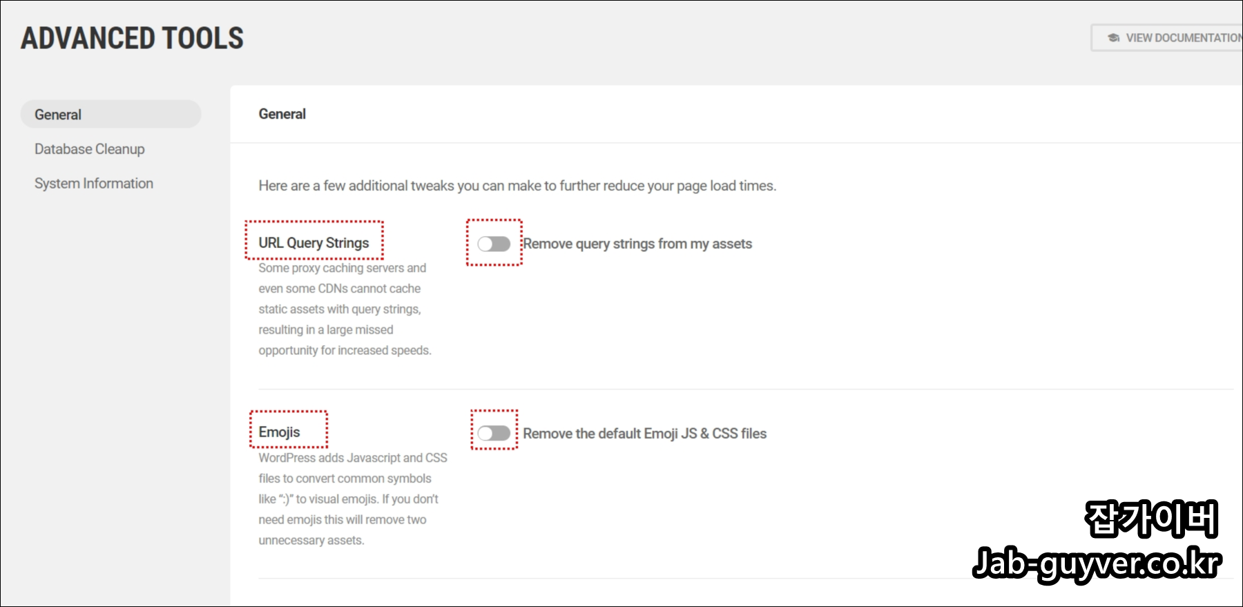 URL 쿼리 이모지"Emoji"기능을 삭제해서 로딩속도를 향상시킵니다.