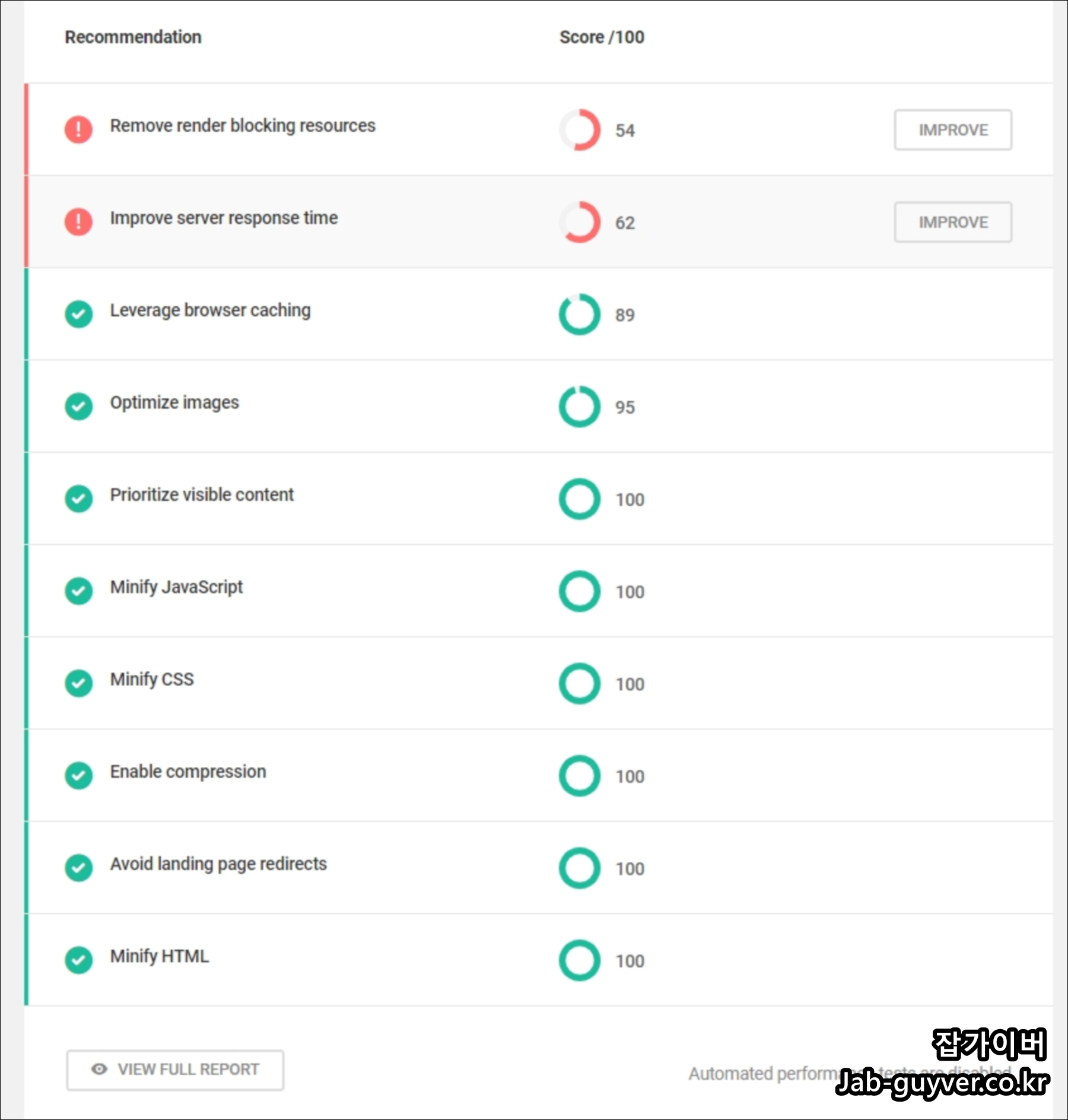 페이지로드에 시간을 단축할 수 있는 방법이 저는 154개가 나옵니다.