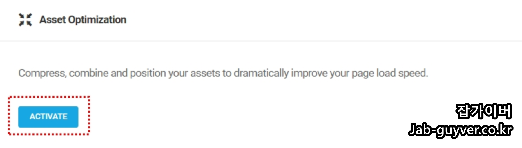 Asset Optimization에서 필요없는 기능들을 아래로 내려 홈페이지 속도를 비약적으로 빠르게 설정합니다.