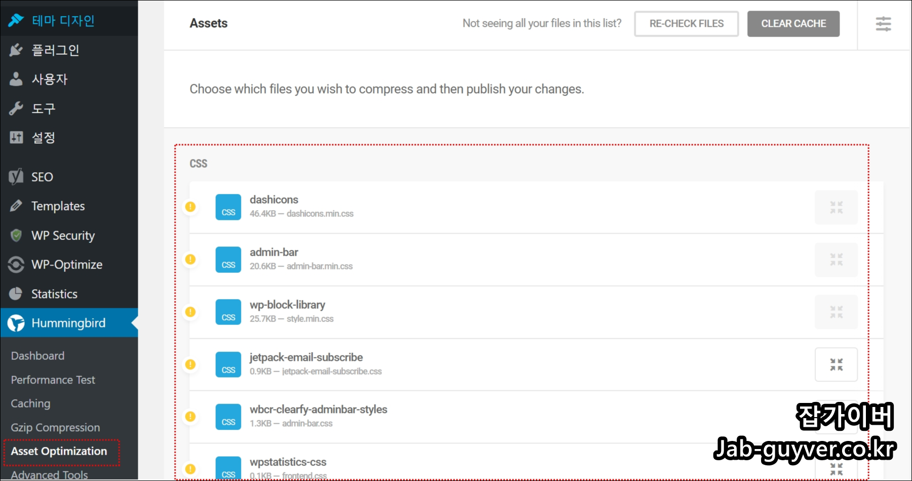 워드프레스 CSS Gzip 압축 최적화 플러그인 Hummingbird