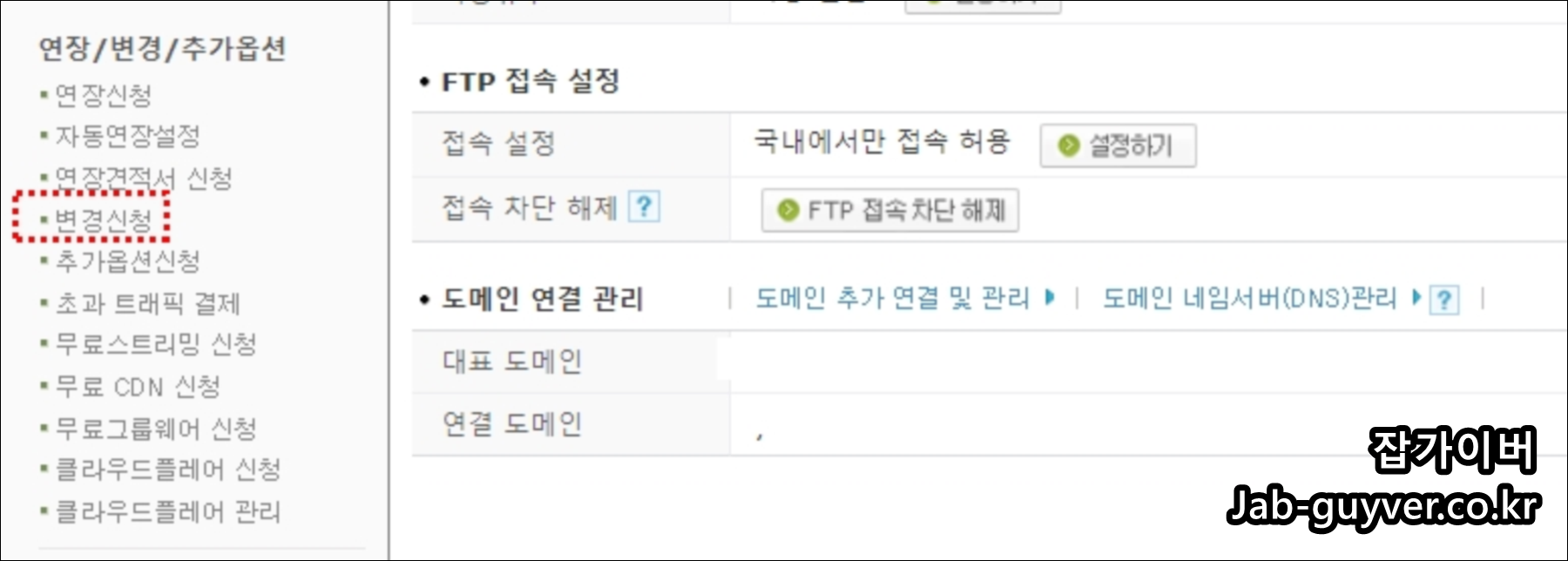 - 서버환경에 대한 FTP 와 DB 비밀번호를 입력 후 변경신청을 합니다.