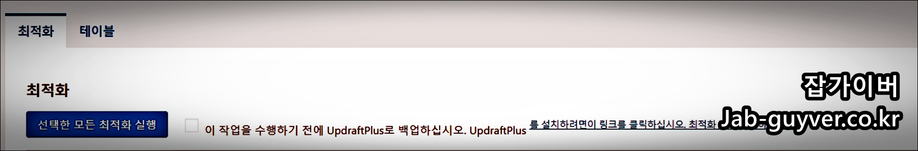 Q. WP-Optimize 최적화 실행 전 백업은 어떻게 하나요?
