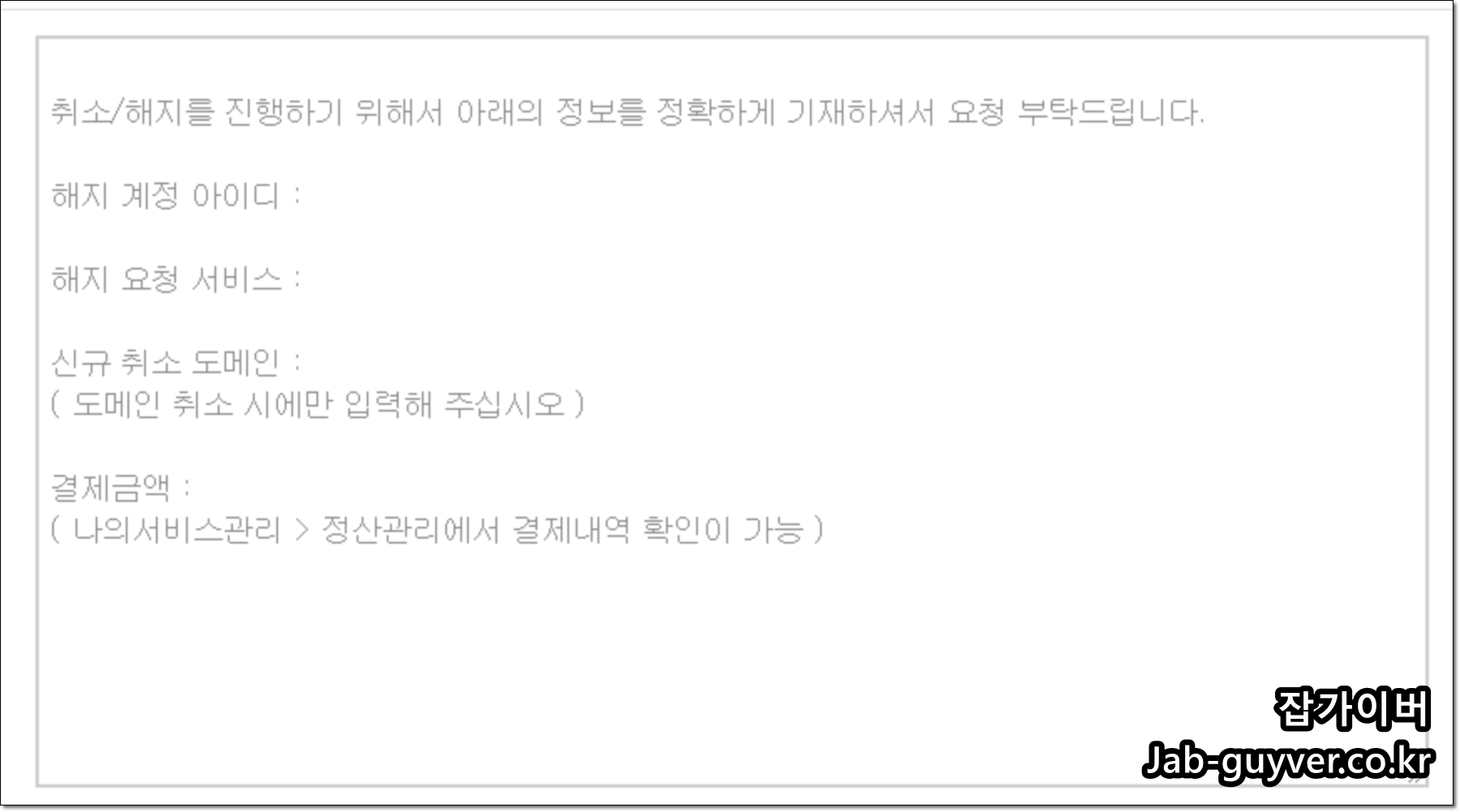 단순히 결제만 취소하는 것이 아니라, 더 이상 쓰지 않을 호스팅이라면 서비스 해지요청 항목도 함께 체크해 두는 게 좋습니다. 이 부분을 놓치면 다음 결제일에 자동 갱신이 이어질 수 있기 때문에, 운영을 완전히 옮겼다면 해지도 동시에 선택해 두는 게 안전합니다.
