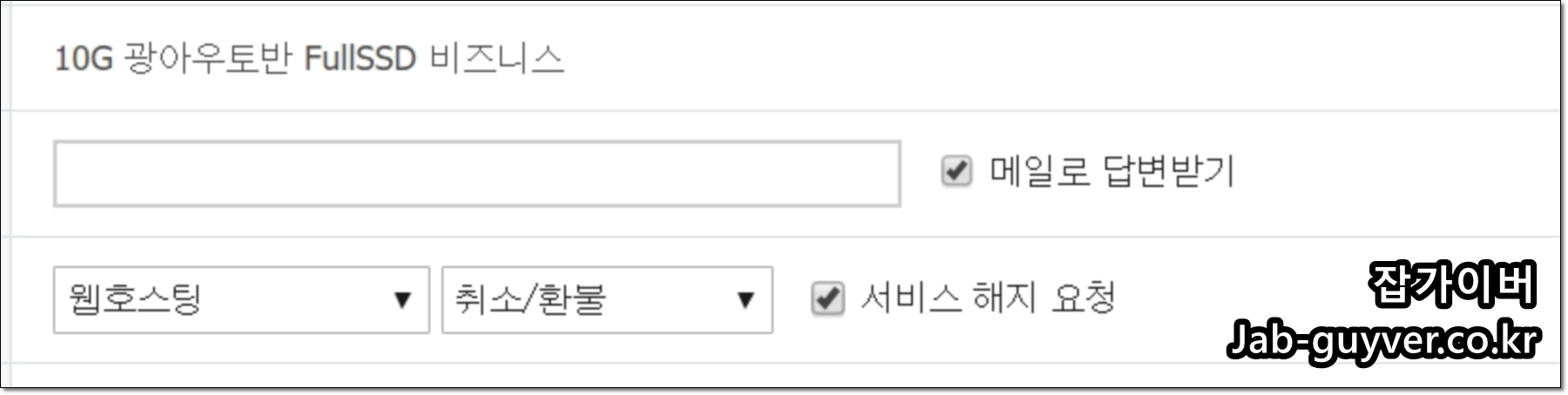 예를 들어 제가 사용했던 상품은 10G 광아우토반 FullSSD 비즈니스였고, 같은 방식으로 본인이 사용 중인 호스팅 이름이 노출됩니다.