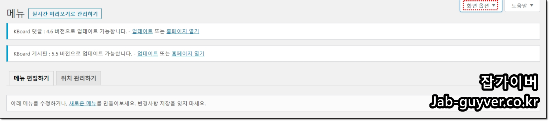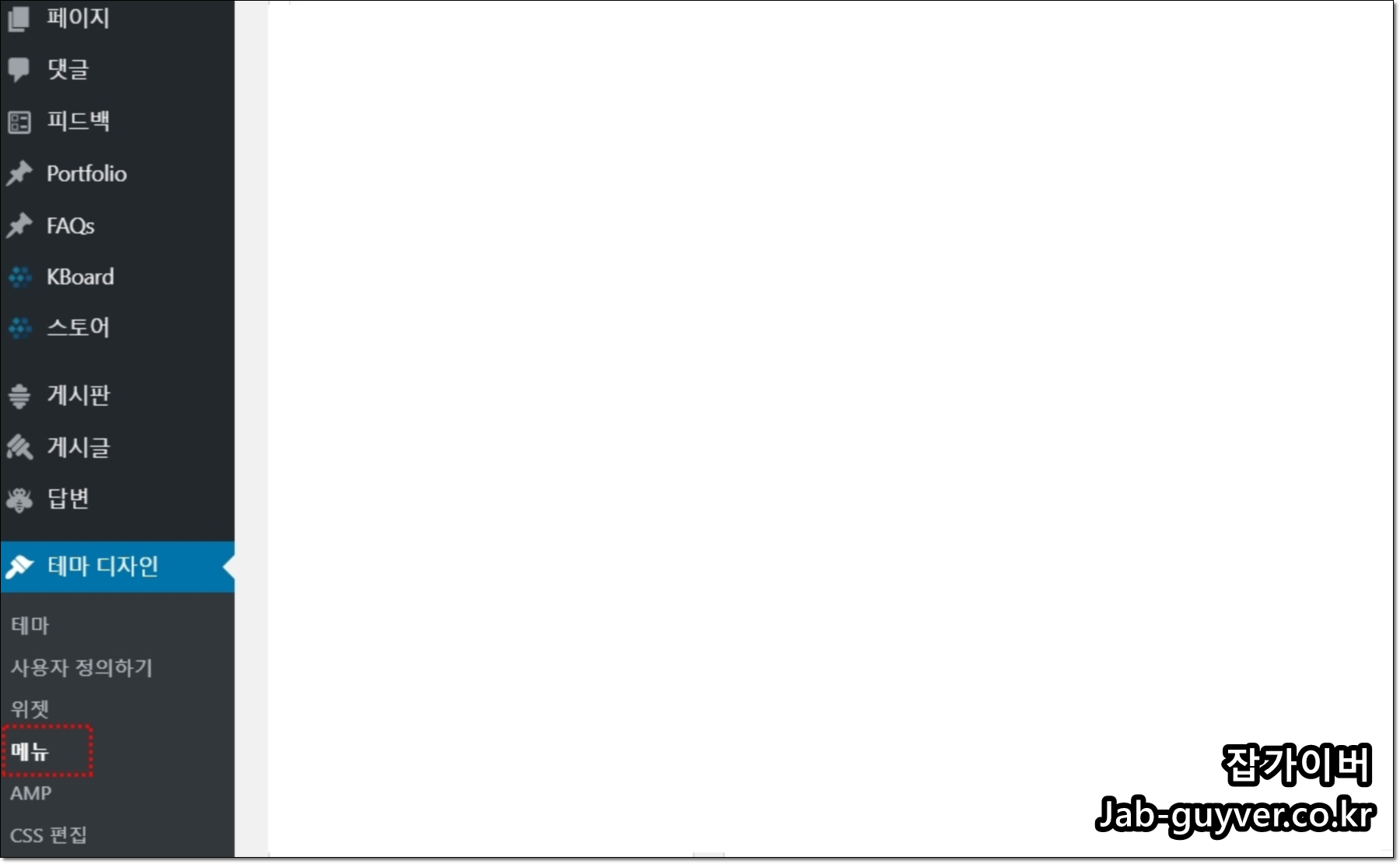 가장먼저 워드프레스의 테마디자인 - 메뉴로 들어갑니다.