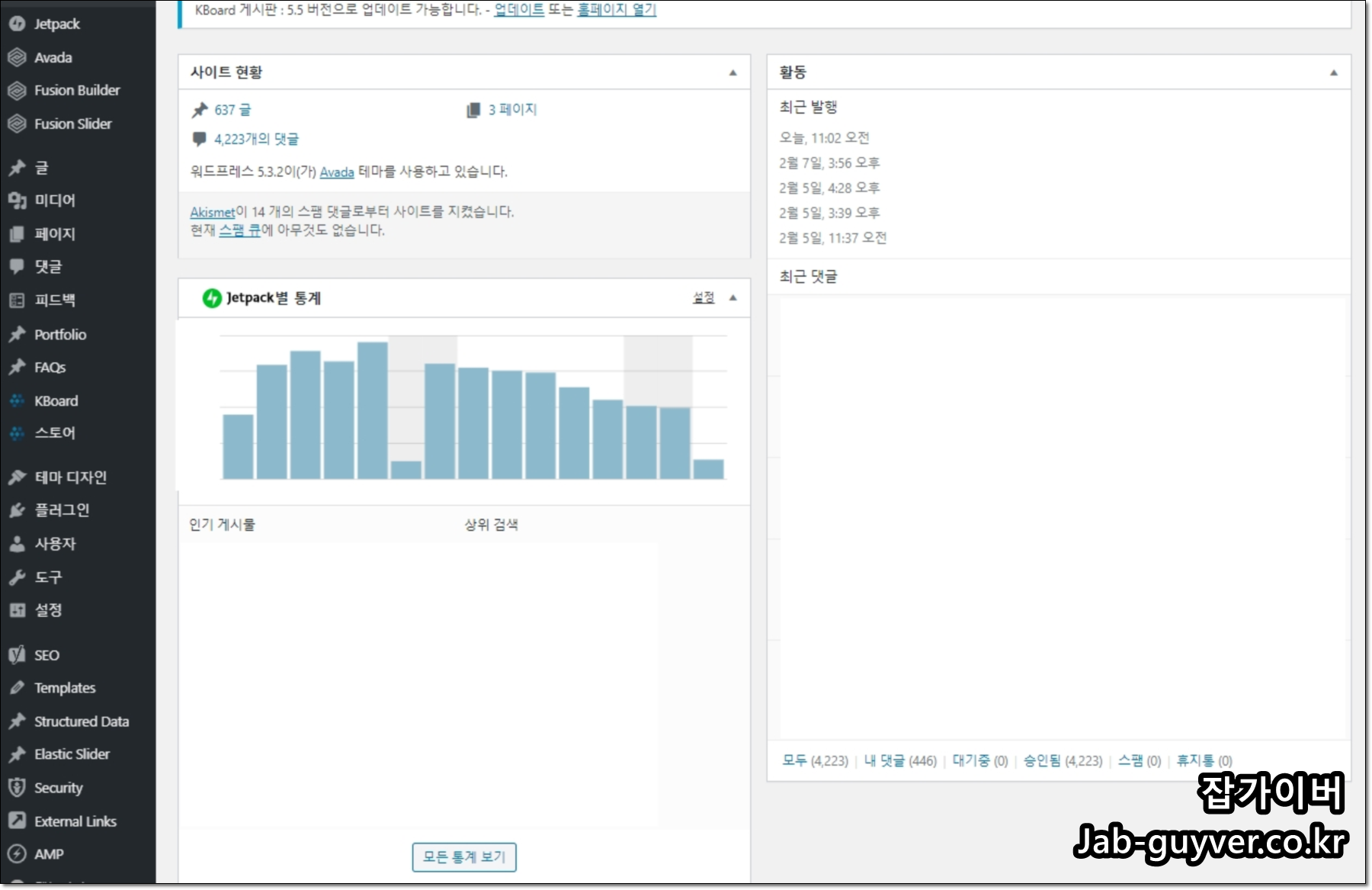 워드프레스의 다양한 플러그인중에서 전세계적으로 가장 추천하는 플러그인 주엥서 젯팩 JetPack 이라는 플러그인이 있습니다.