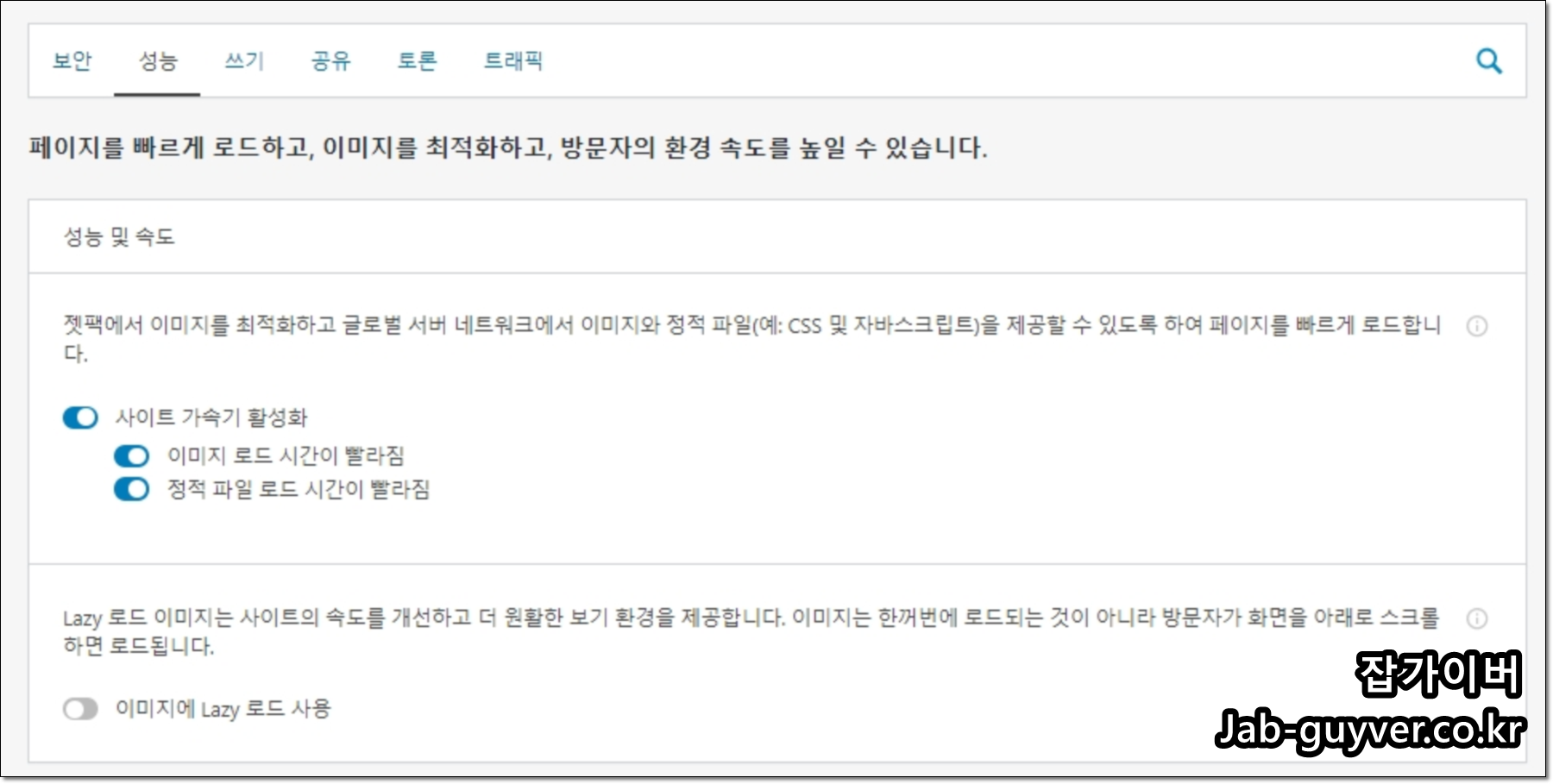 | WP Rocket | 캐시, 압축, Lazy Load 등 성능 향상 | Jetpack 이미지 CDN과 병행 가능 |