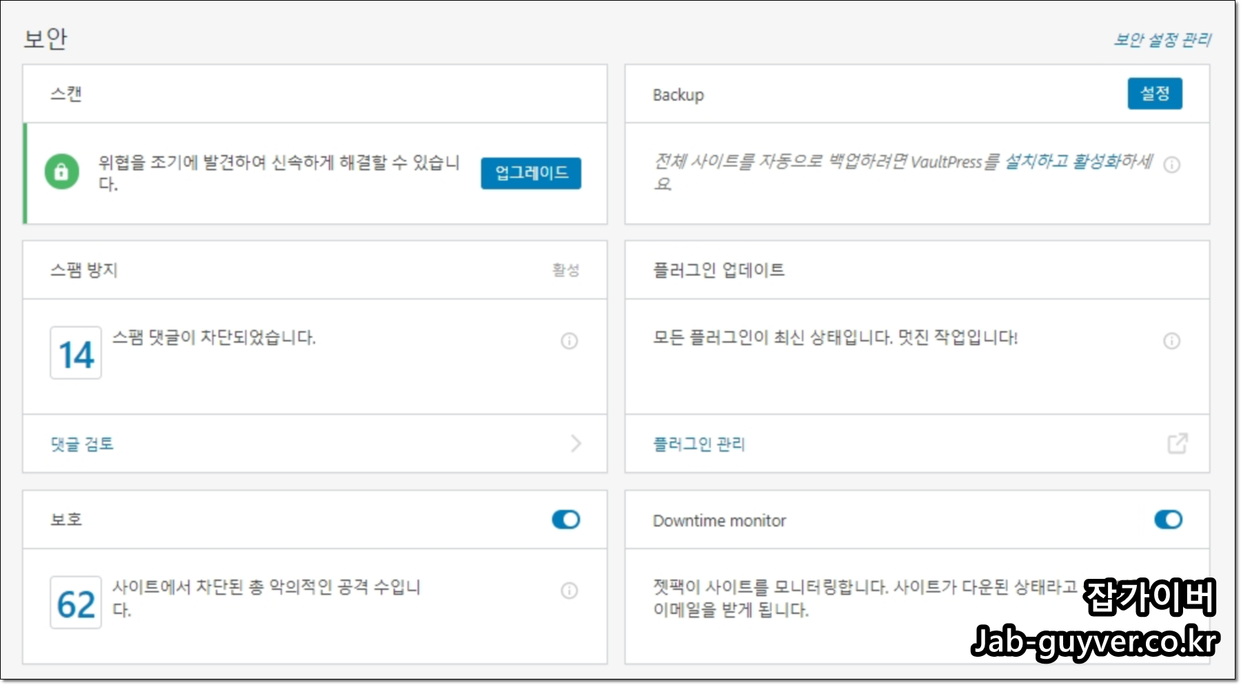보안, 성능 및 사이트 관리: 워드프레스를 이용하는 가장 좋은 방법은 젯팩을 사용하는 것입니다.연중무휴로 사이트 보안