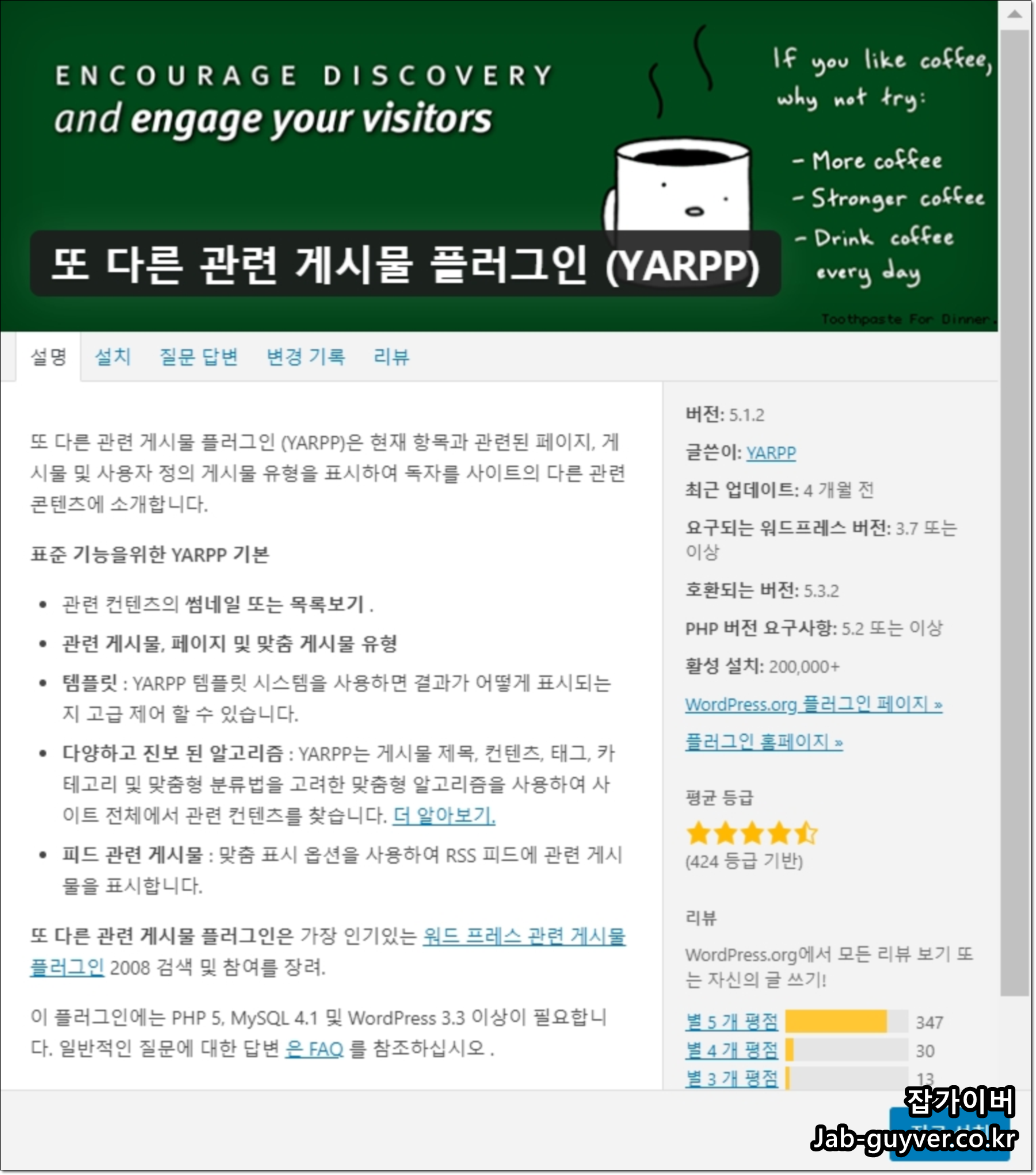 워드프레스에서 "Yet Another Related Plugin" 플러그인을 검색해서 설치합니다.
