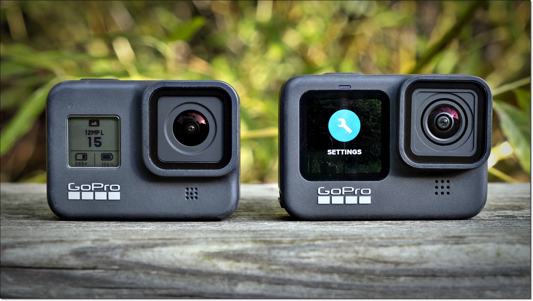 - 둘 다: 뒷면의 컬러 터치스크린, 히어로 9가 더 큽니다.